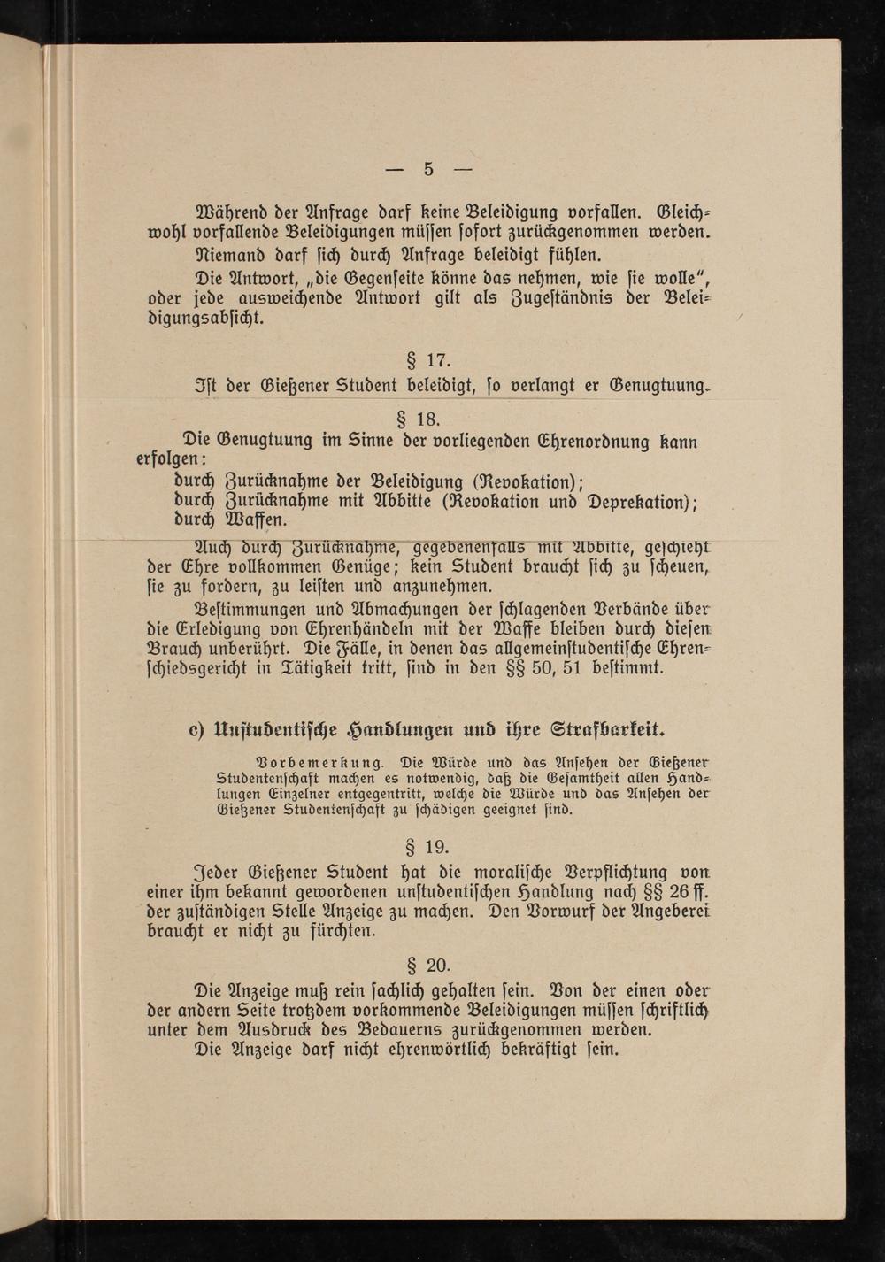 § 17. Iſt der Gießener Student beleidigt, ſo verlangt er Genugtuung.