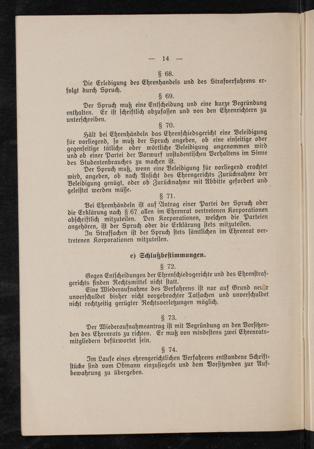 § 68. Die Erledigung des Ehrenhandels und des Strafverfahrens er⸗ folgt durch Spruch. § 69.