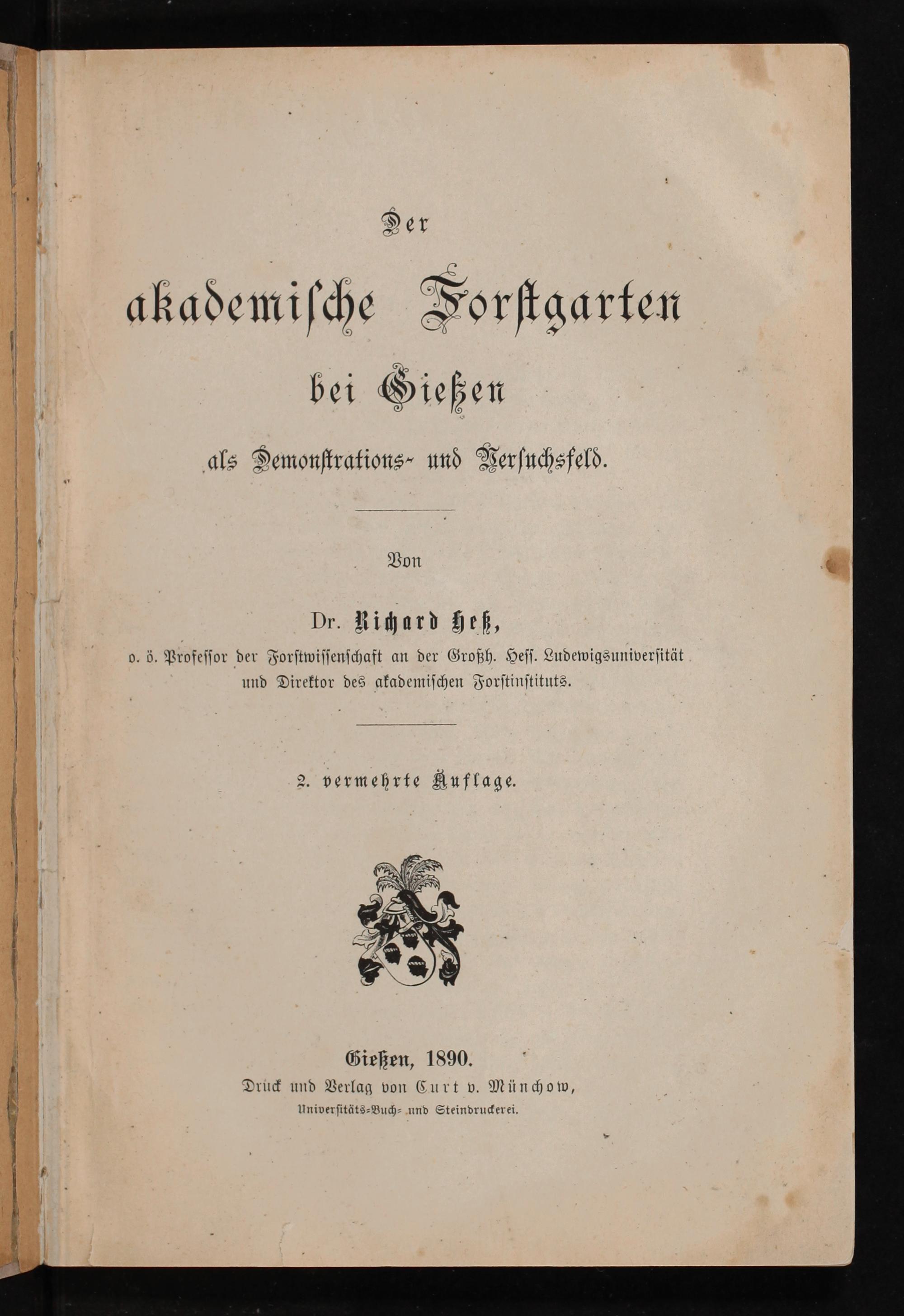 o. ö. Profeſſor der Forſtwiſſenſchaft an der Großh. Heſſ. Ludewigsuniverſität und Direktor des akademiſchen Forſtinſtituts.