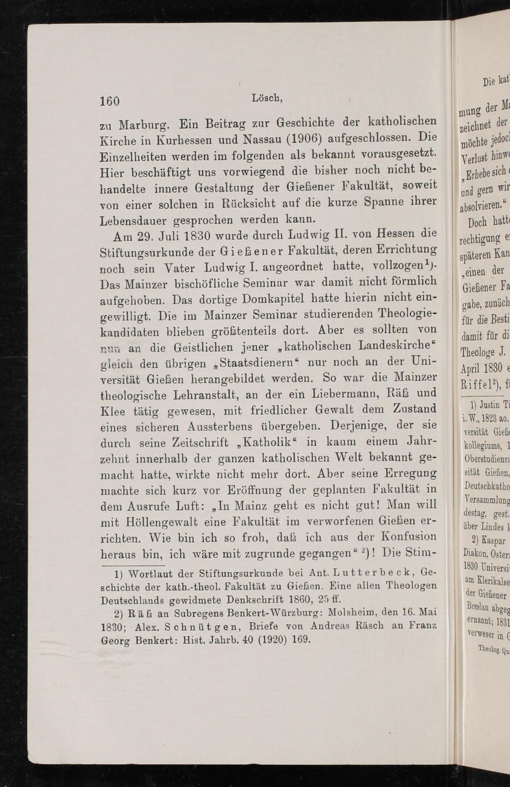 1) Wortlaut der Stiftungsurkunde bei Ant. Lutterbeck, Ge- schichte der kath.-theol. Fakultät zu Gießen. Eine allen Theologen Deutschlands gewidmete Denkschrift 1860, 25 ff.