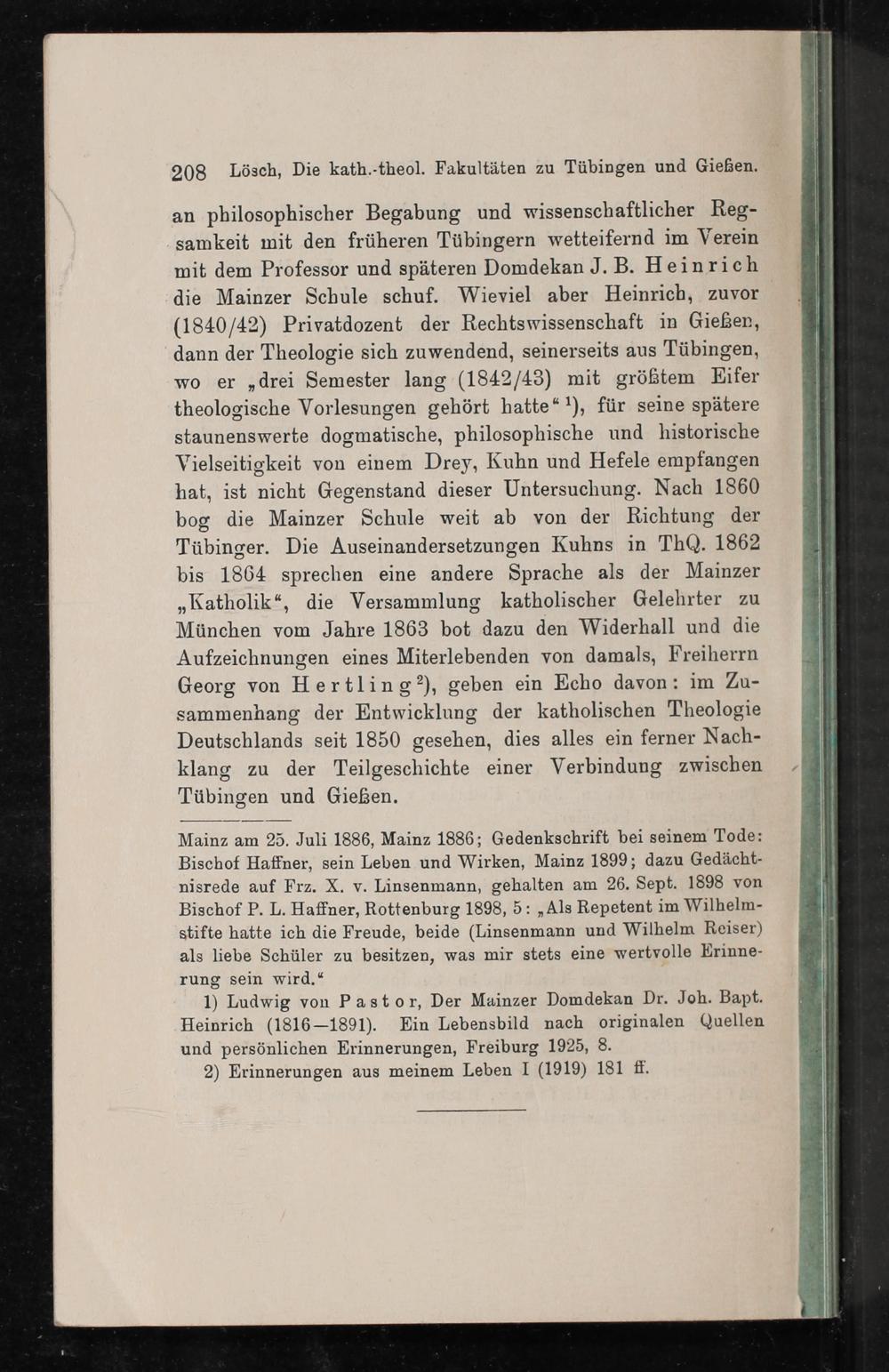 208 Lösch, Die kath.-theol. Fakultäten zu Tübingen und Gießen.