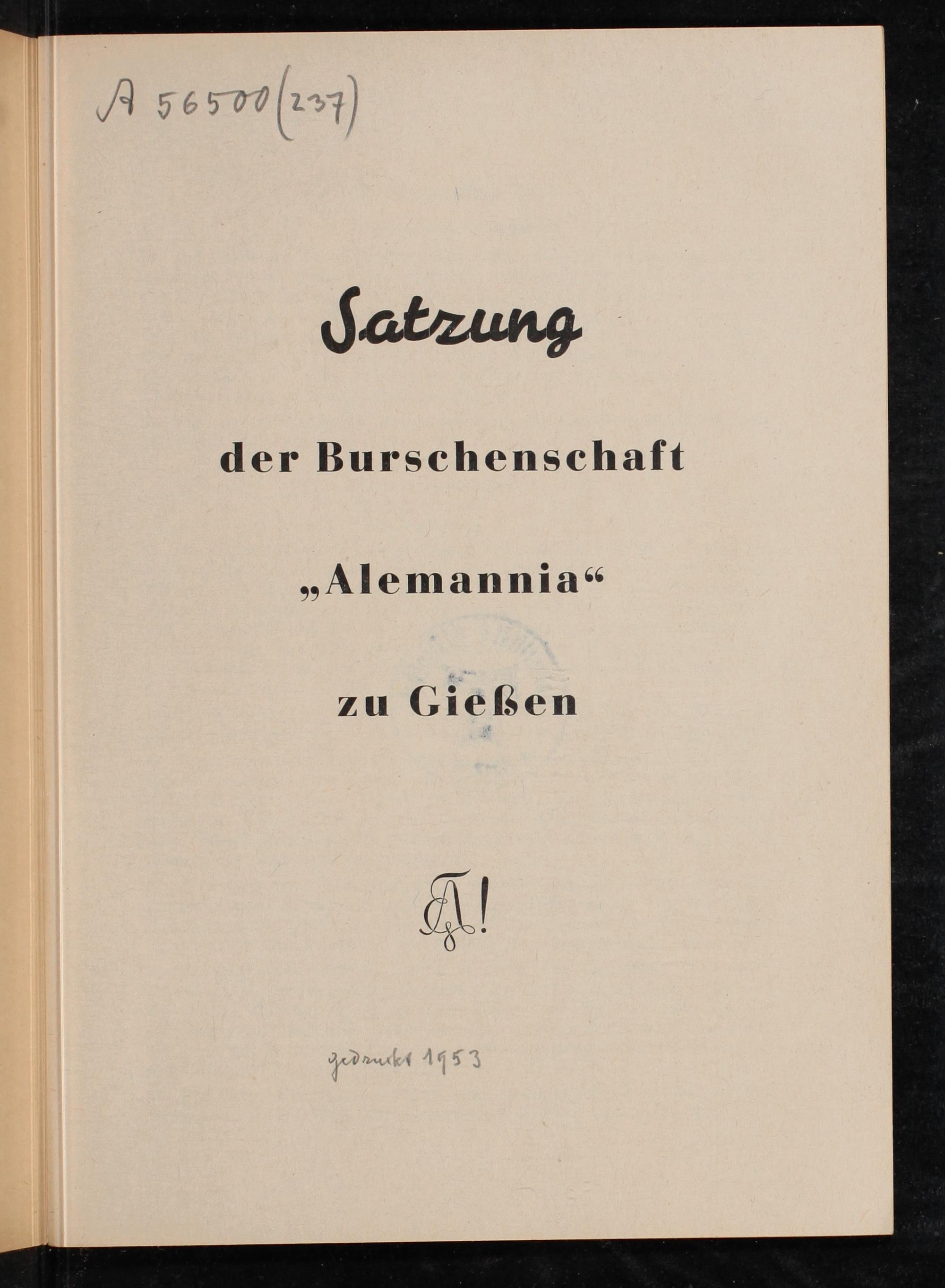 Satzung der Burschenschaft "Alemannia" zu Gießen