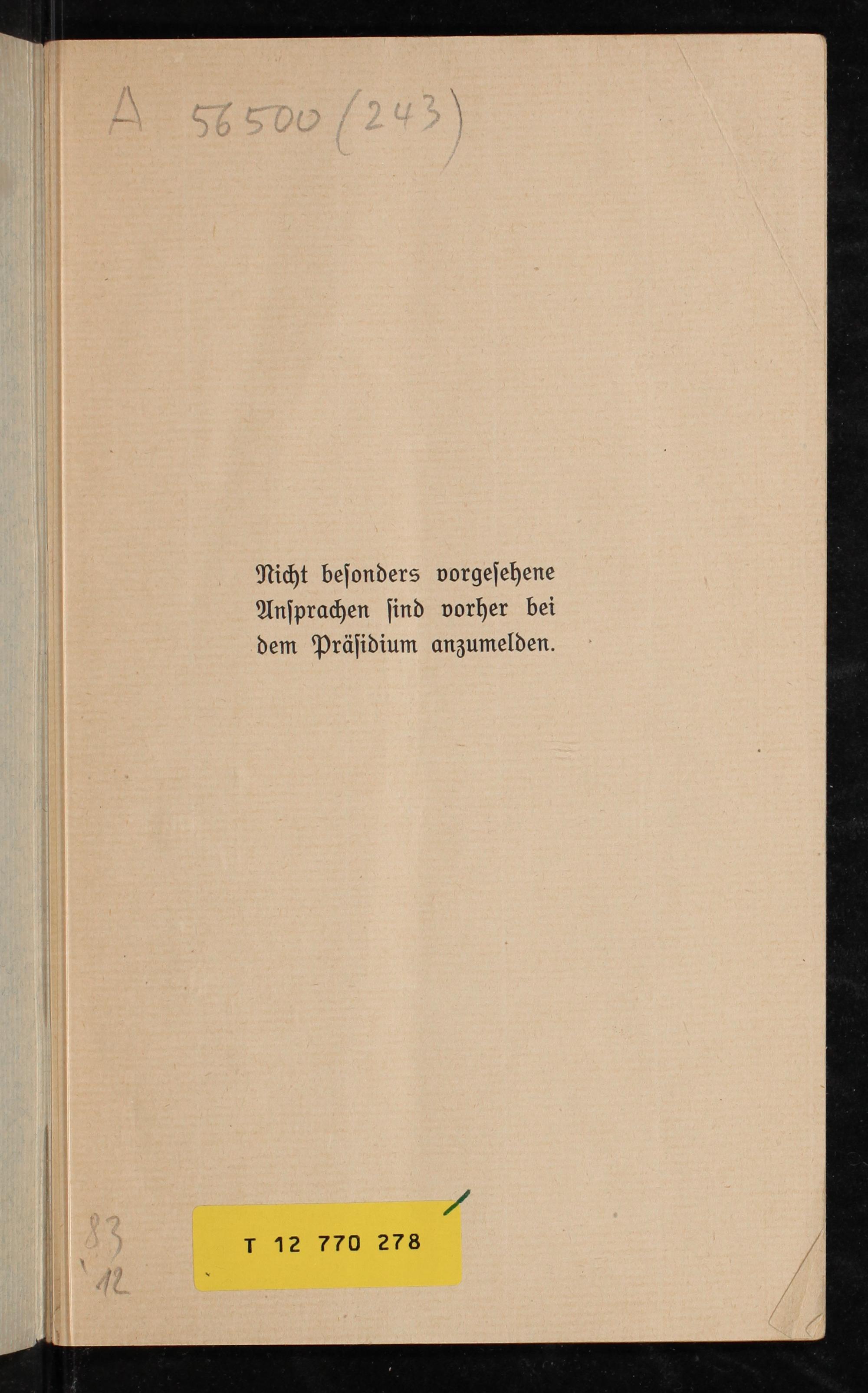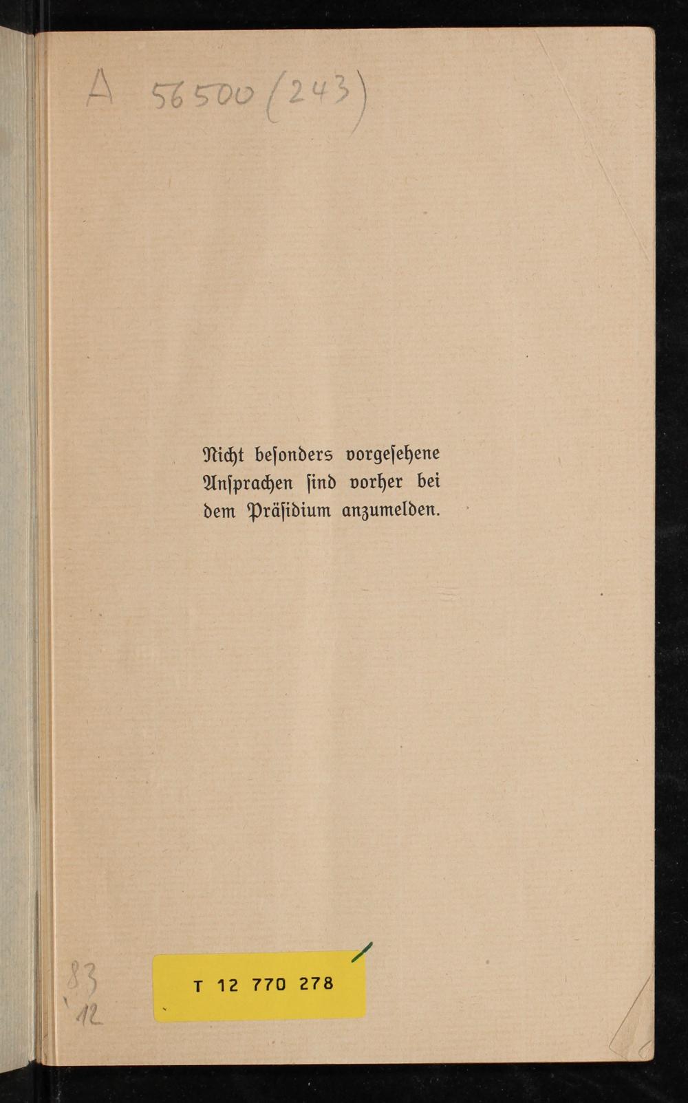 Nicht beſonders vorgeſehene Anſprachen ſind vorher bei dem Präſidium anzumelden.