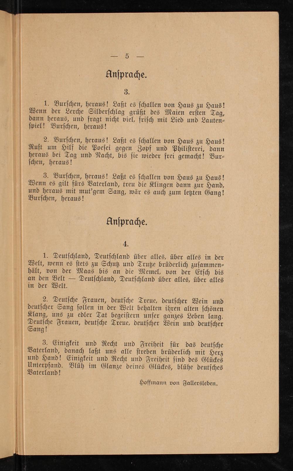 Klang, uns zu edler Tat begeiſtern unſer ganzes Leben lang. Deutſche Frauen, deutſche Treue, deutſcher Wein und deutſcher