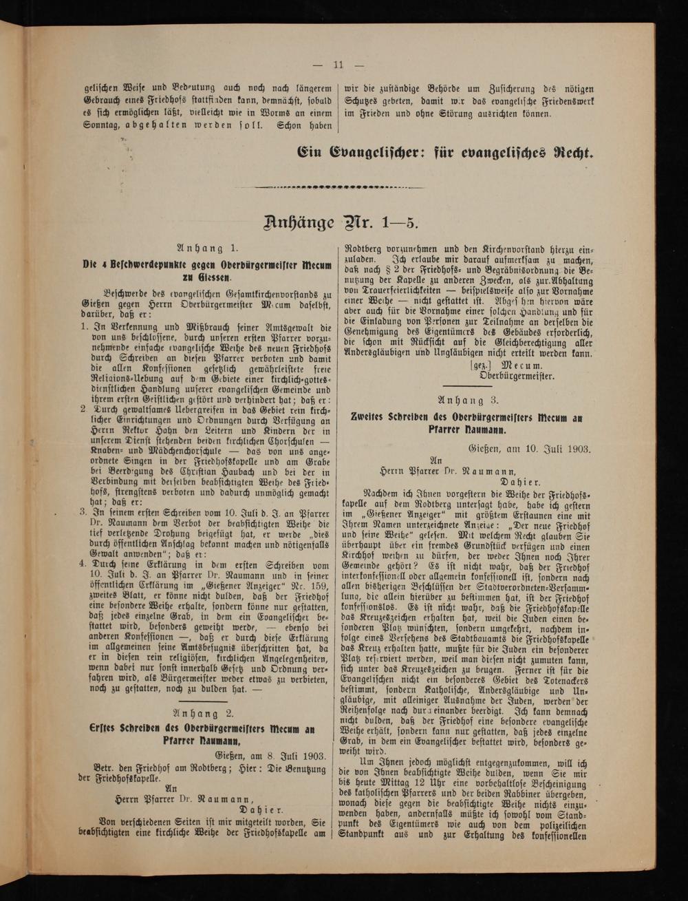 Anhang 2. Erſtes Schreiben des Oberbürgermeifters mecum an Pfarrer haumann,