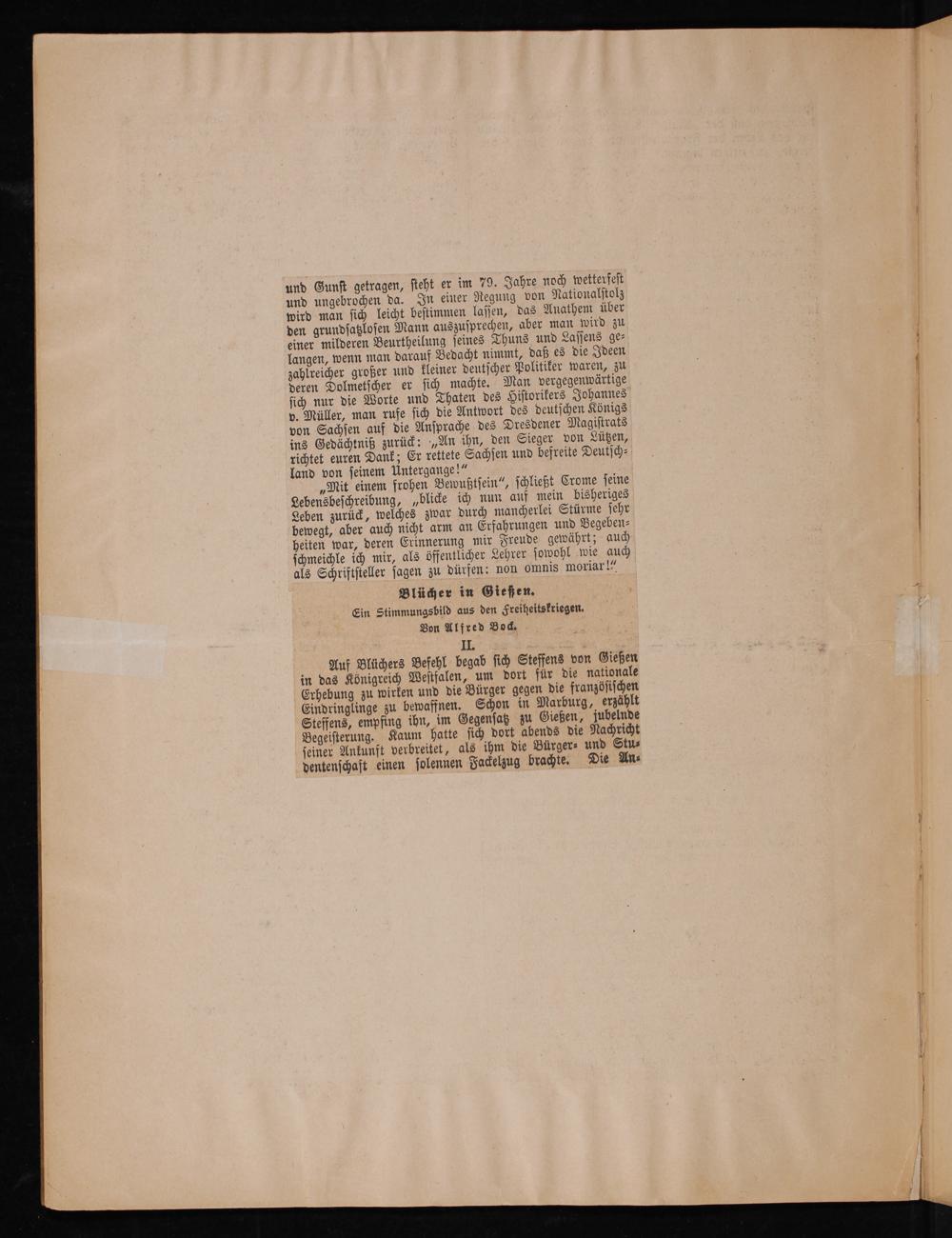 Blücher in Gießen. Ein Stimmungsbild aus den Freiheitskriegen. Von Alfred Bock.