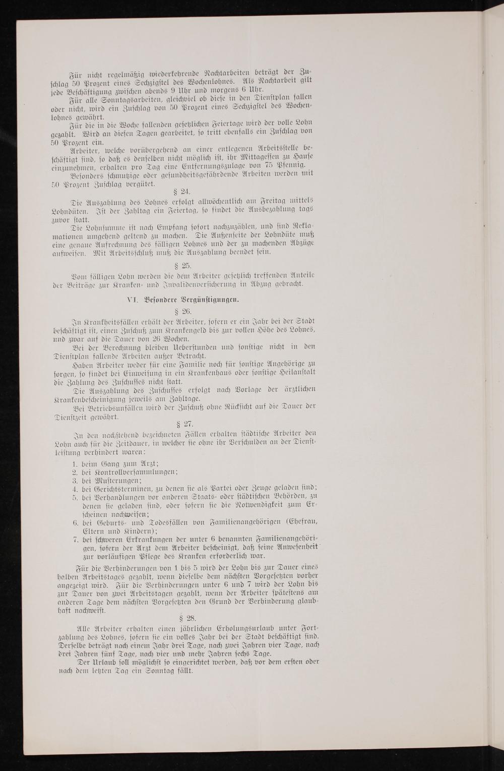 In den nachſtehend bezeichneten Fällen erhalten ſtädtiſche Arbeiter den Lohn auch für die Zeitdauer, in welcher ſie ohne ihr Verſchulden an der Dienſt leiſtung verhindert waren: beim Gang zum Arzt; bei Kontrollverſammlungen; bei Muſterungen; bei Gerichtsterminen, zu denen ſie als Partei oder Zeuge geladen ſind; bei Verhandlungen vor anderen Staats⸗- oder ſtädtiſchen Behörden, zu denen ſie geladen ſind, oder ſofern ſie die Notwendigkeit zum Er⸗ ſcheinen nachweiſen;