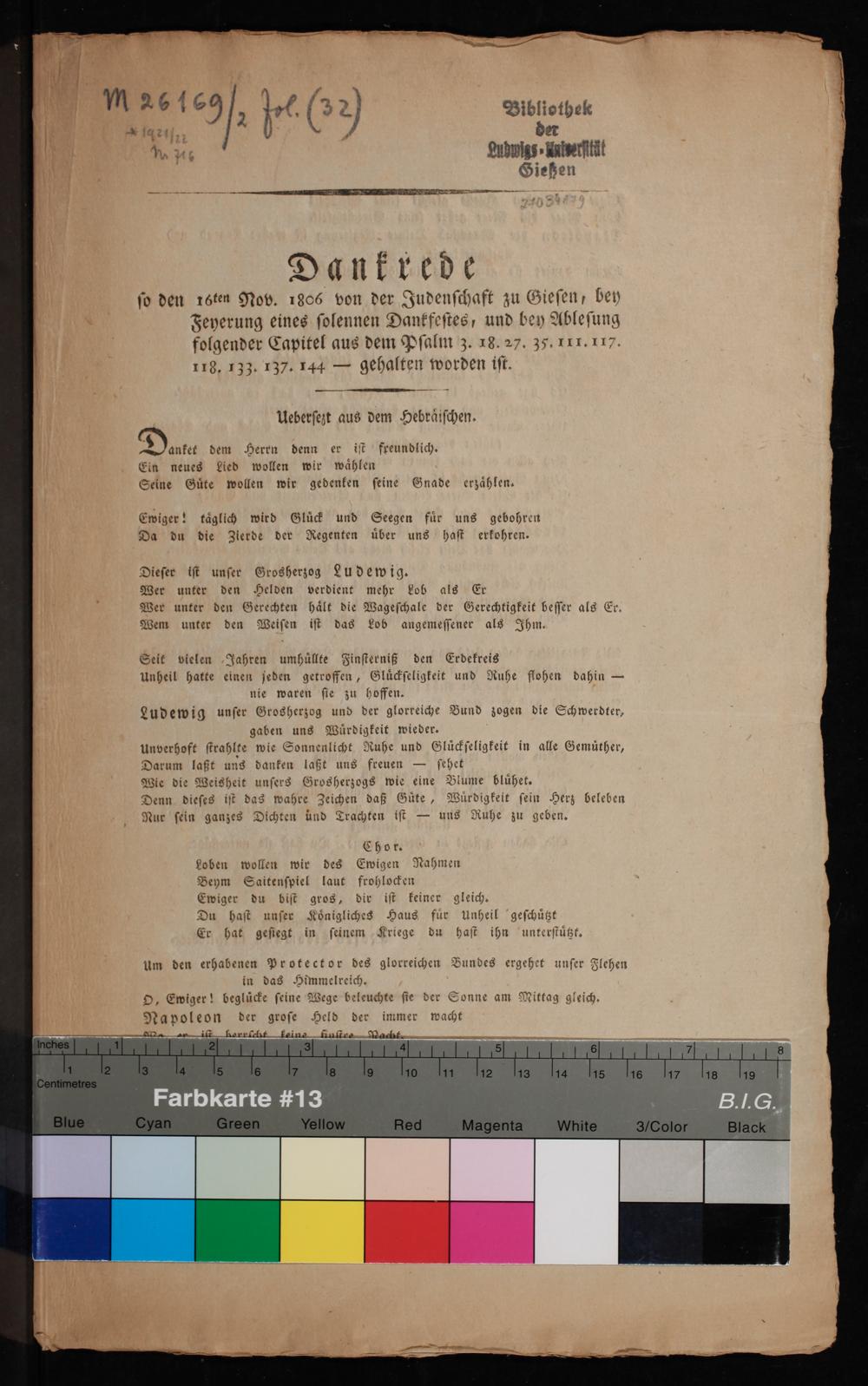 ſo den 16ten Nov. 1306 von der Judenſchaft zu Gieſen, bey Feyerung eines ſolennen Dankfeſtes, und bey Ableſung folgender Capitel aus dem Pſalm 3. 18. 27. 35. 111. 117. 118, 133. 137. 144— gehalten worden iſt.