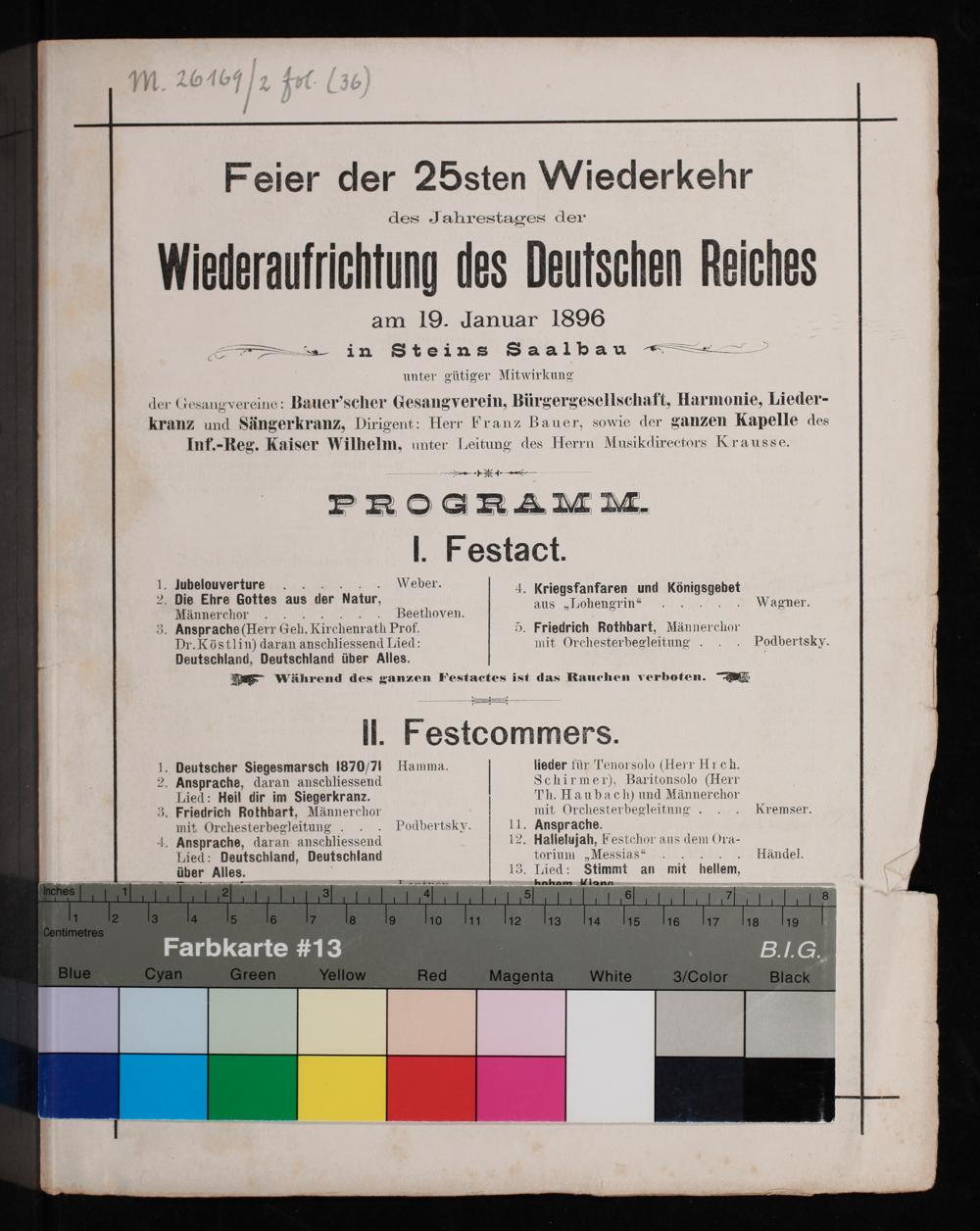 3. Friedrich Rothbart, Männerchor mit Orchesterbegleitung... Kremser. mit Orchesterbegleitung... Podbertsky.. Ansprache.