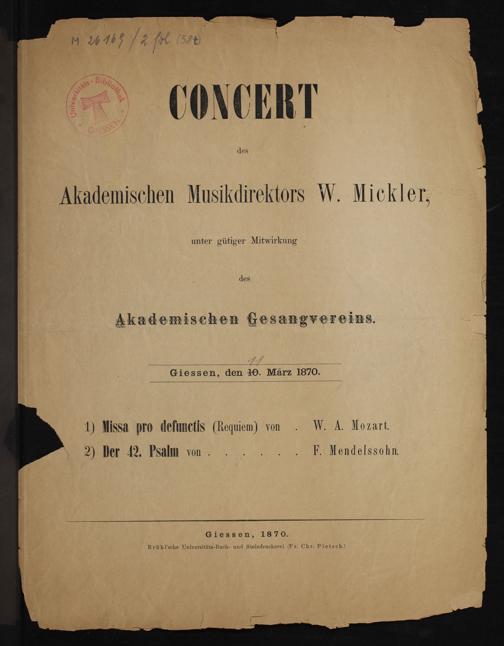 1) Nissa pro defunctis(Requiem) von. W. A. Nolart. 9 her 42. PSalm von...... F. Nendelssohn.