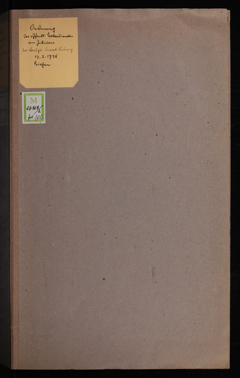 Ordnung des öffentlichen Gottesdienstes in Giessen : an dem Gnädigst angeordneten Jubilæo oder Danck- und Freuden-Fest, als der Durchläuchtigste Fürst und Herr, Herr Ernst Ludwig, Landgraf zu Hessen, Fürst zu Herßfeld, Graf zu Catzenelnbogen, Dietz, Ziegenhain, Nidda, Schaumburg, Ysenburg und Büdingen [et]c. Unser Gnädigster Fürst und Herr, das Ein und Fünffzigste Jahr Ihro Hoch-Fürstl. Durchl. glorwürdigstgeseegneten Landes-Regierung den 17ten Febr. 1738. angetretten, und dieser recht merckwürdige Tag in sämtlichen Hoch-Fürstl. Hessen-Darmstättischen Landen feyerlichst begangen wurde : nebst einer deßfals vorgeschiebenen Dancksagung und Gebet, welche auf die gnädigst-verordnete Texte gerichtet, und auf allen Cantzeln des Ober-Fürstenthums zu gebrauchen / Ex speciali Commissione des Fürstl. Consistorii dem Druck übergeben von D. Johann Georg Liebknecht, Prof. publ. ord. Superintendente, wie auch den Consistorii daselbst Assessore