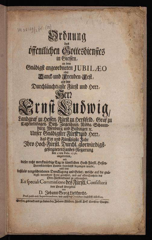 geſeegneten Landes⸗Regierung den 17ten Febr. 1738. angetretten, . und dieſer recht merckwuͤrdige Tag in ſaͤmtlichen Hoch⸗Fuͤrſil. Heſſen⸗ Darmſtaͤttiſchen Landen feyerlichſt begangen wurde,