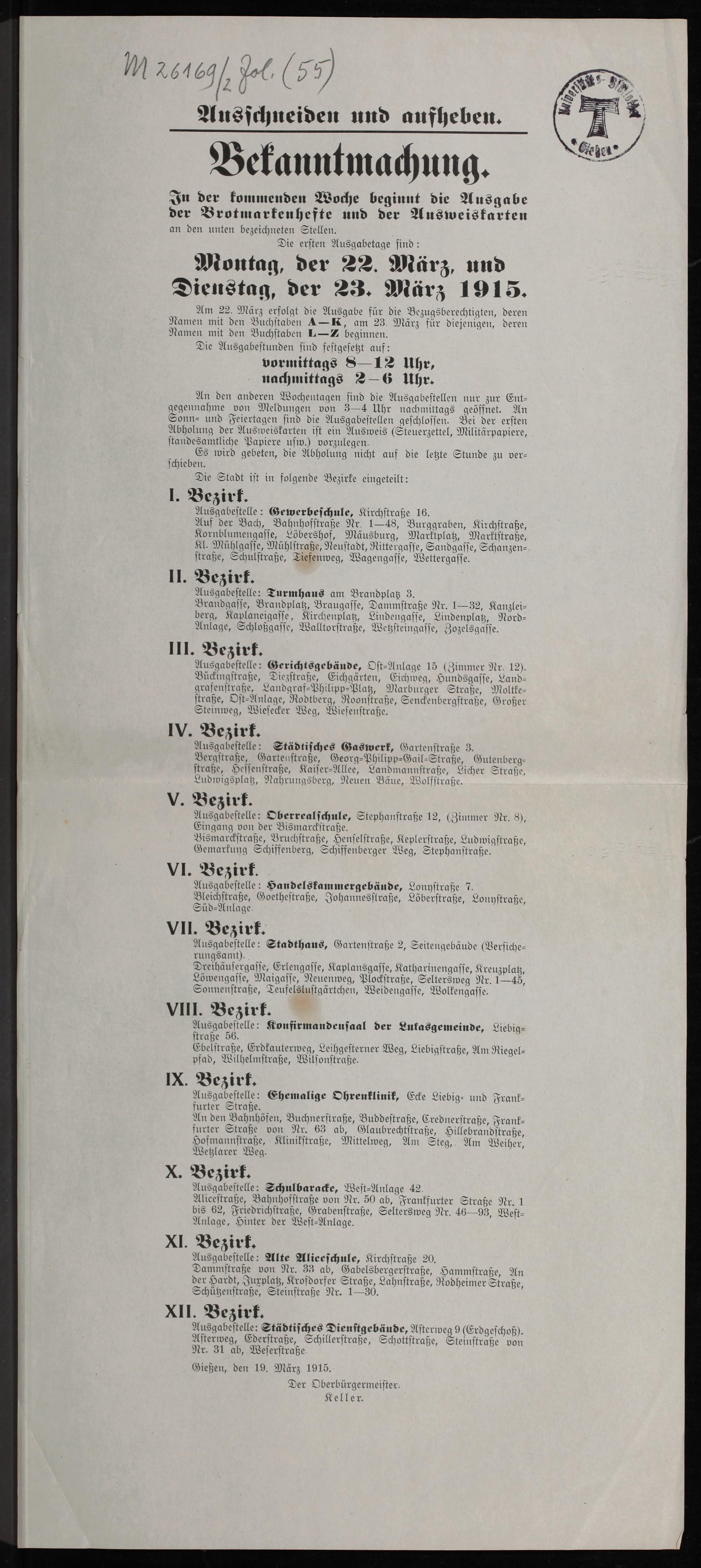 Gießen, den 19. März 1915. Der Oberbürgermeiſter.
