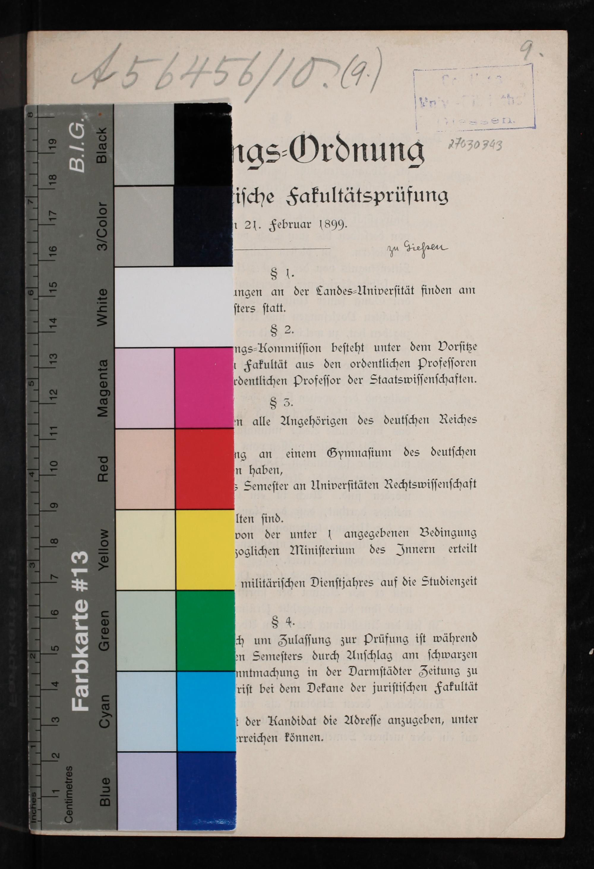 § 4. ch um Zulaſſung zur Prüfung iſt während en Semeſters durch Anſchlag am ſchwarzen untmachung in der Darmſtädter Zeitung zu riſt bei dem Dekane der juriſtiſchen Fakultät