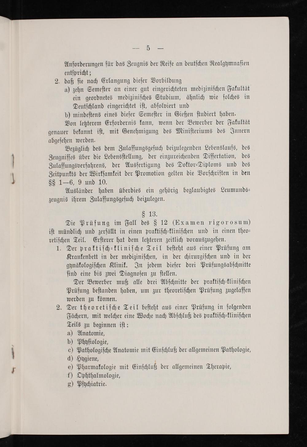 2. Der theoretiſche Teil beſteht aus einer Prüfung in folgenden Fächern, mit welcher eine Woche nach Abſchluß des praktiſch⸗kliniſchen Teils zu beginnen iſt: