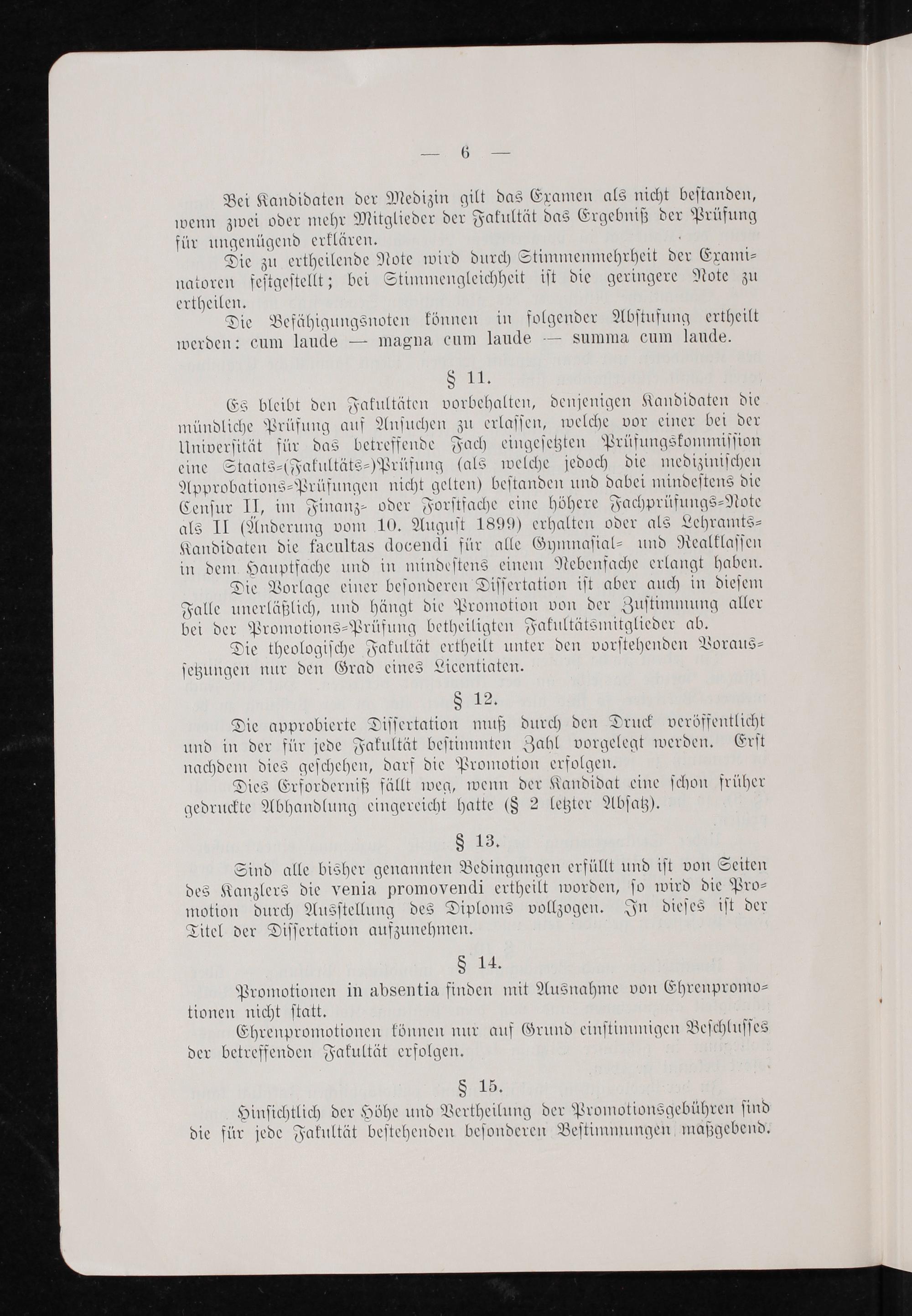 Die approbierte Diſſertation muß durch den Druck veröffentlicht und in der für jede Fakultät beſtimmten Zahl vorgelegt werden. Erſt nachdem dies geſchehen, darf die Promotion erfolgen.