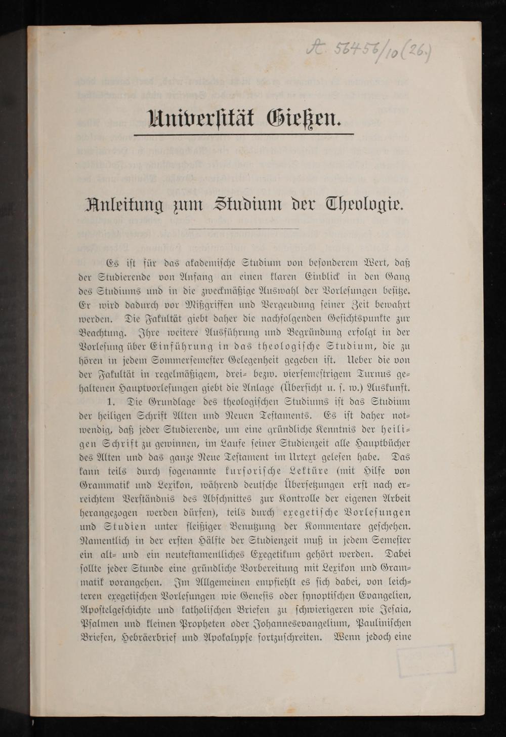 Anleitung zum Studium der Theologie.