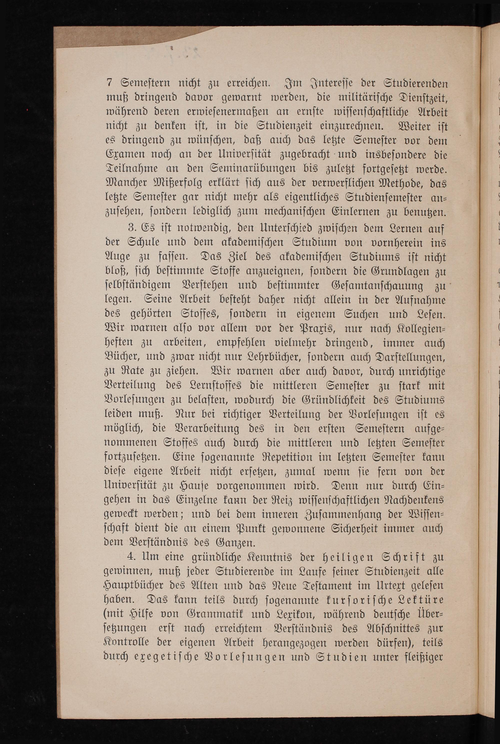 3. Es iſt notwendig, den Unterſchied zwiſchen dem Lernen auf der Schule und dem akademiſchen Studium von vornherein ins Auge zu faſſen. Das Ziel des akademiſchen Studiums iſt nicht bloß, ſich beſtimmte Stoffe anzueignen, ſondern die Grundlagen zu