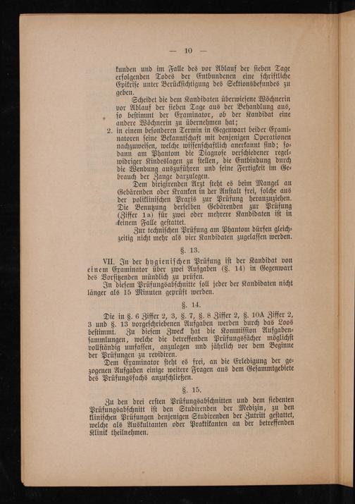 VII. In der hygieniſchen Prüfung iſt der Kandidat von einem Examinator über zwei Aufgaben(§. 14) in Gegenwart des Vorſitzenden mündlich zu prüfen.