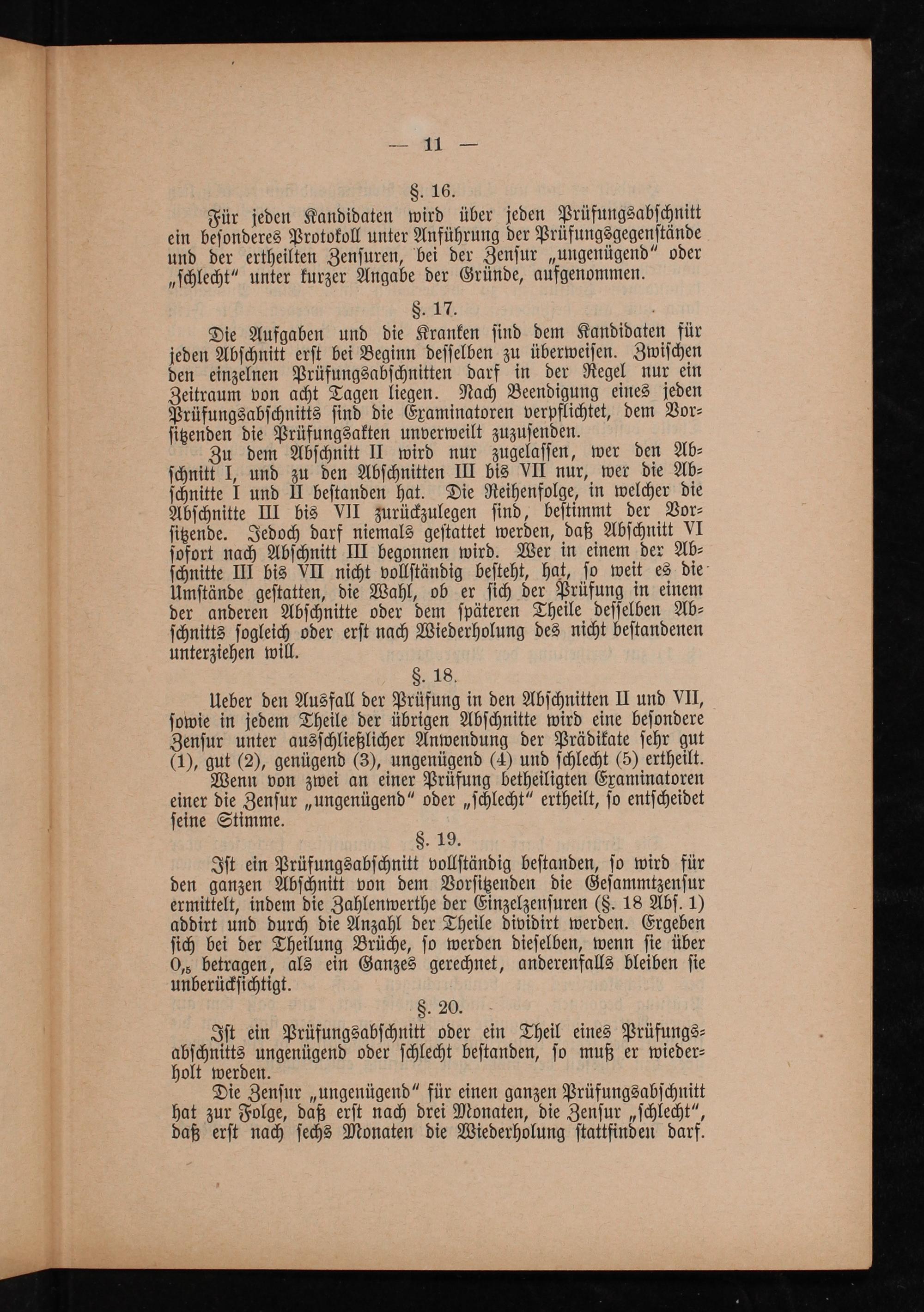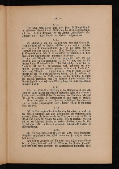 Für jeden Kandidaten wird über jeden Prüfungsabſchnitt ein beſonderes Protokoll unter Anführung der Prüfungsgegenſtände und der ertheilten Zenſuren, bei der Zenſur„ungenügend“ oder „ſchlecht“ unter kurzer Angabe der Gründe, aufgenommen.