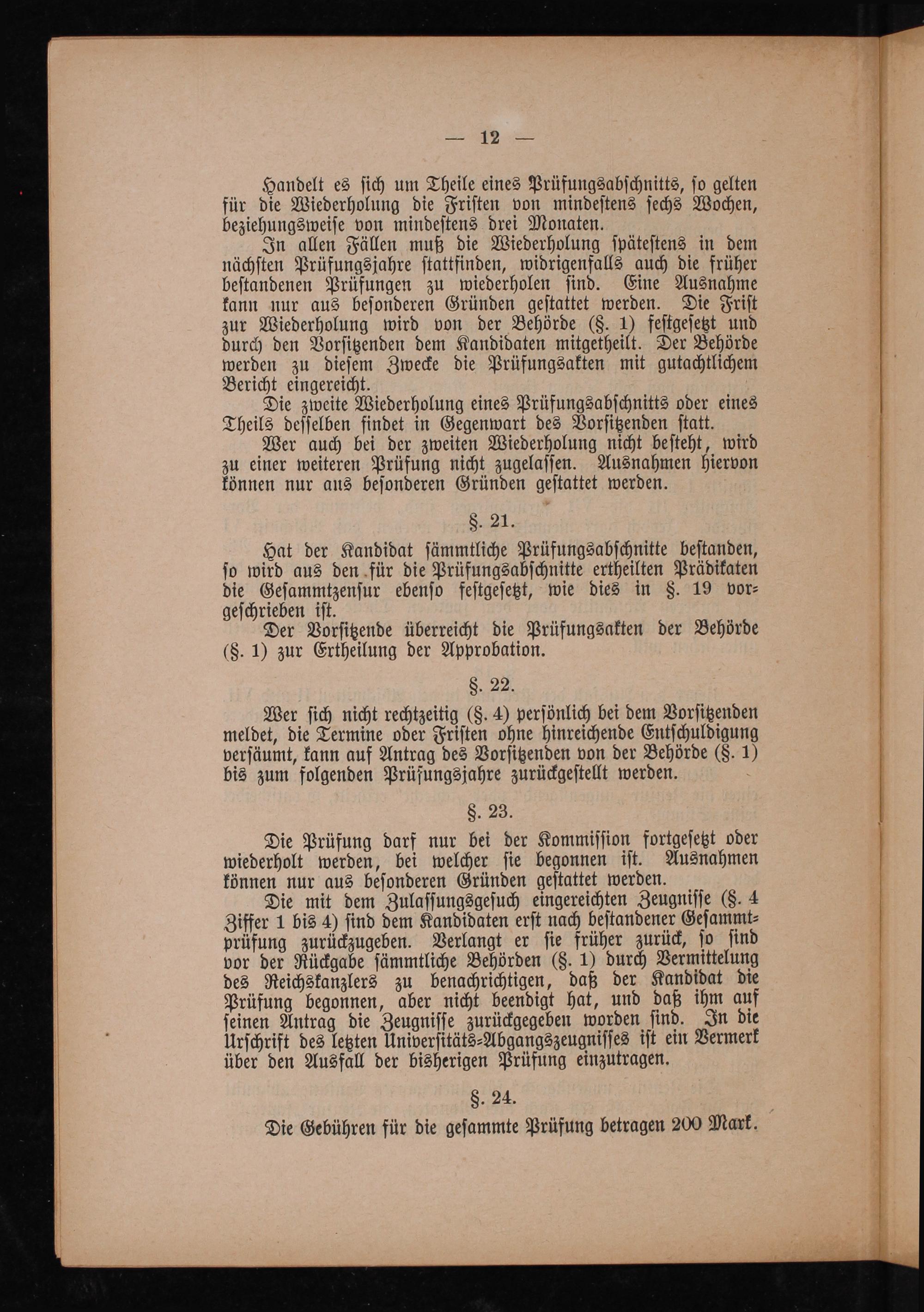 §. 24. Die Gebühren für die geſammte Prüfung betragen 200 Mark.