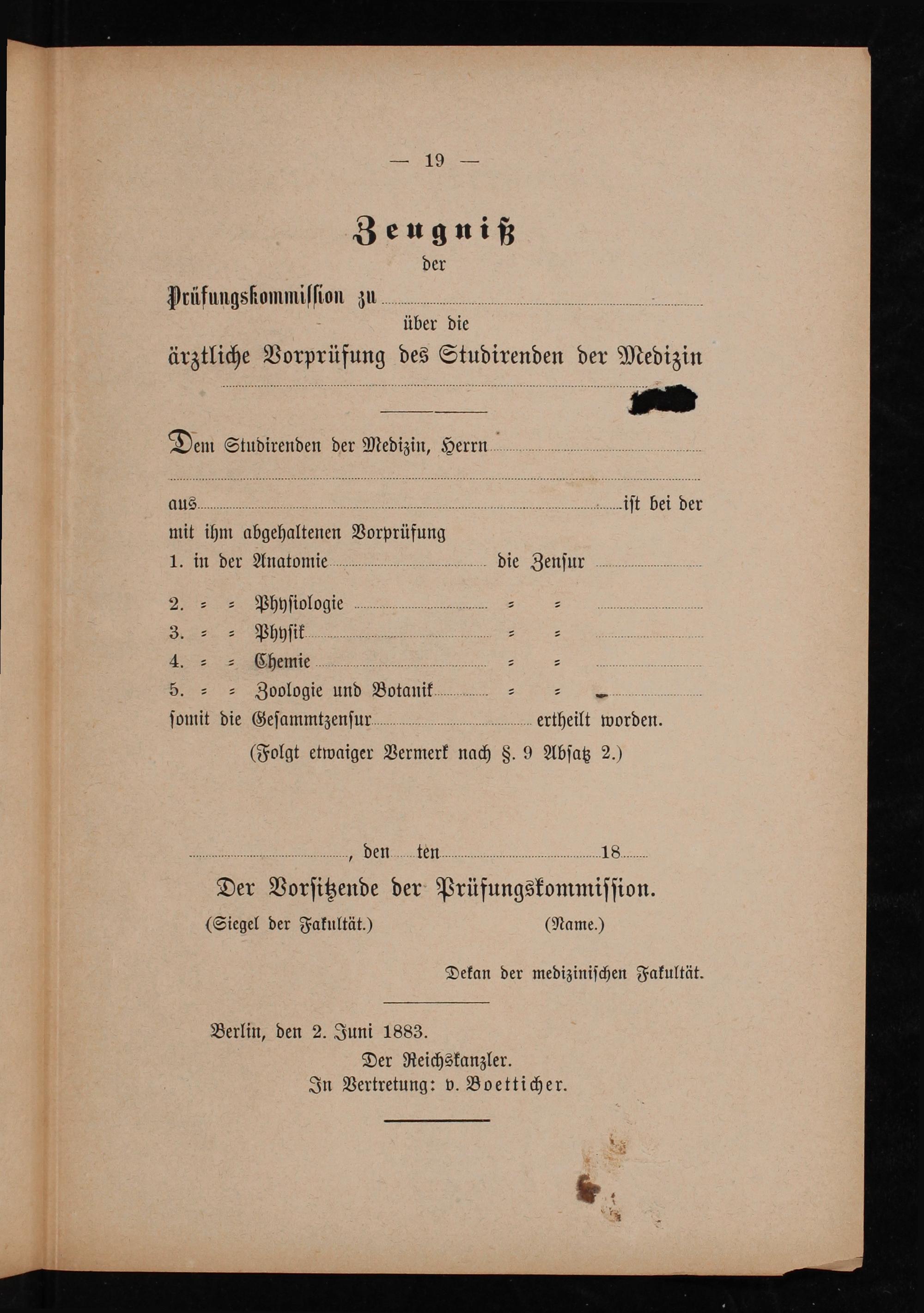 Der Vorſitzende der Prüfungskommiſſion. (Siegel der Fakultät.)(Name.)