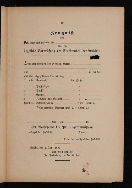 mit ihm abgehaltenen Vorprüfung 1. in der Anatomie——ddie Zenſur
