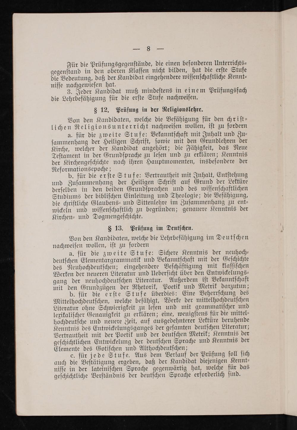 3. Jeder Kandidat muß mindeſtens in einem Prüfungsfach die Lehrbefähigung für die erſte Stufe nachweiſen.