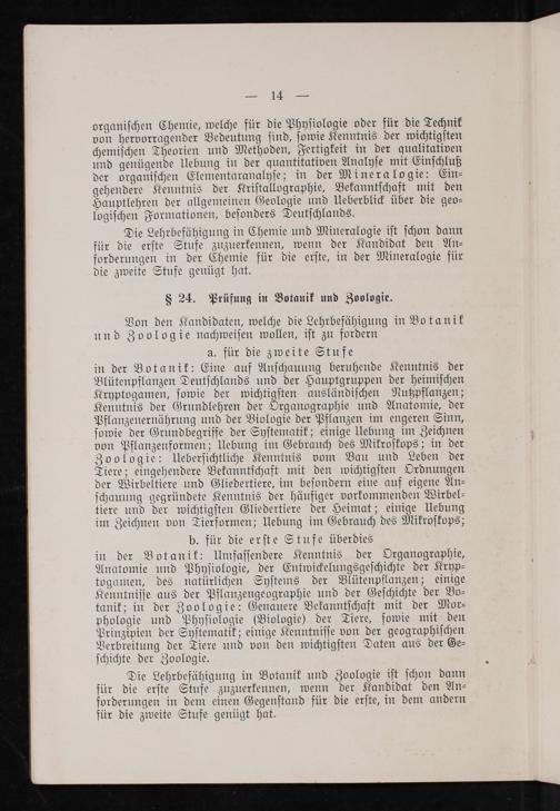 Die Lehrbefähigung in Botanik und Zoologie iſt ſchon dann für die erſte Stufe zuzuerkennen, wenn der Kandidat den An⸗ forderungen in dem einen Gegenſtand für die erſte, in dem andern für die zweite Stufe genügt hat.