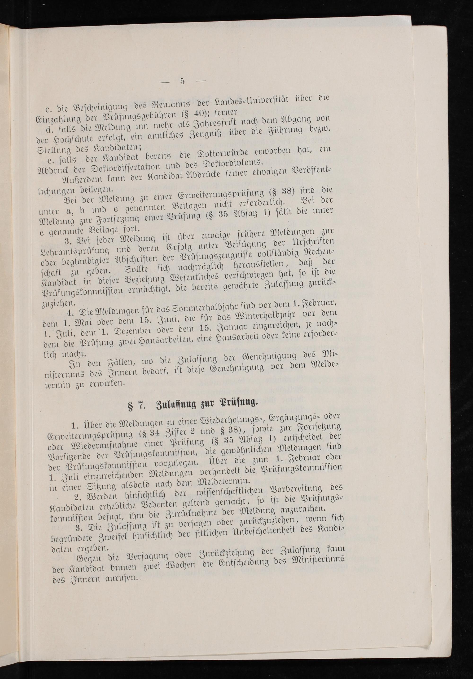 Bei der Meldung zu einer Erweiterungsprüfung(§ 38) ſind die unter a, b und e genannten Beilagen nicht erforderlich. Bei der Meldung zur Fortſetzung einer Prüfung(§ 35 Abſatz 1) fällt die unter c genannte Beilage fort.