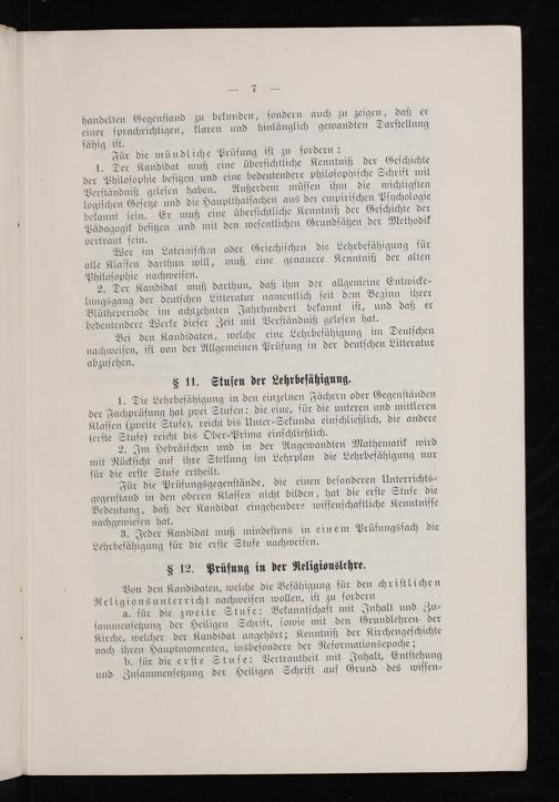3. Jeder Kandidat muß mindeſtens in einem Prüfungsfach die Lehrbefähigung für die erſte Stufe nachweiſen.