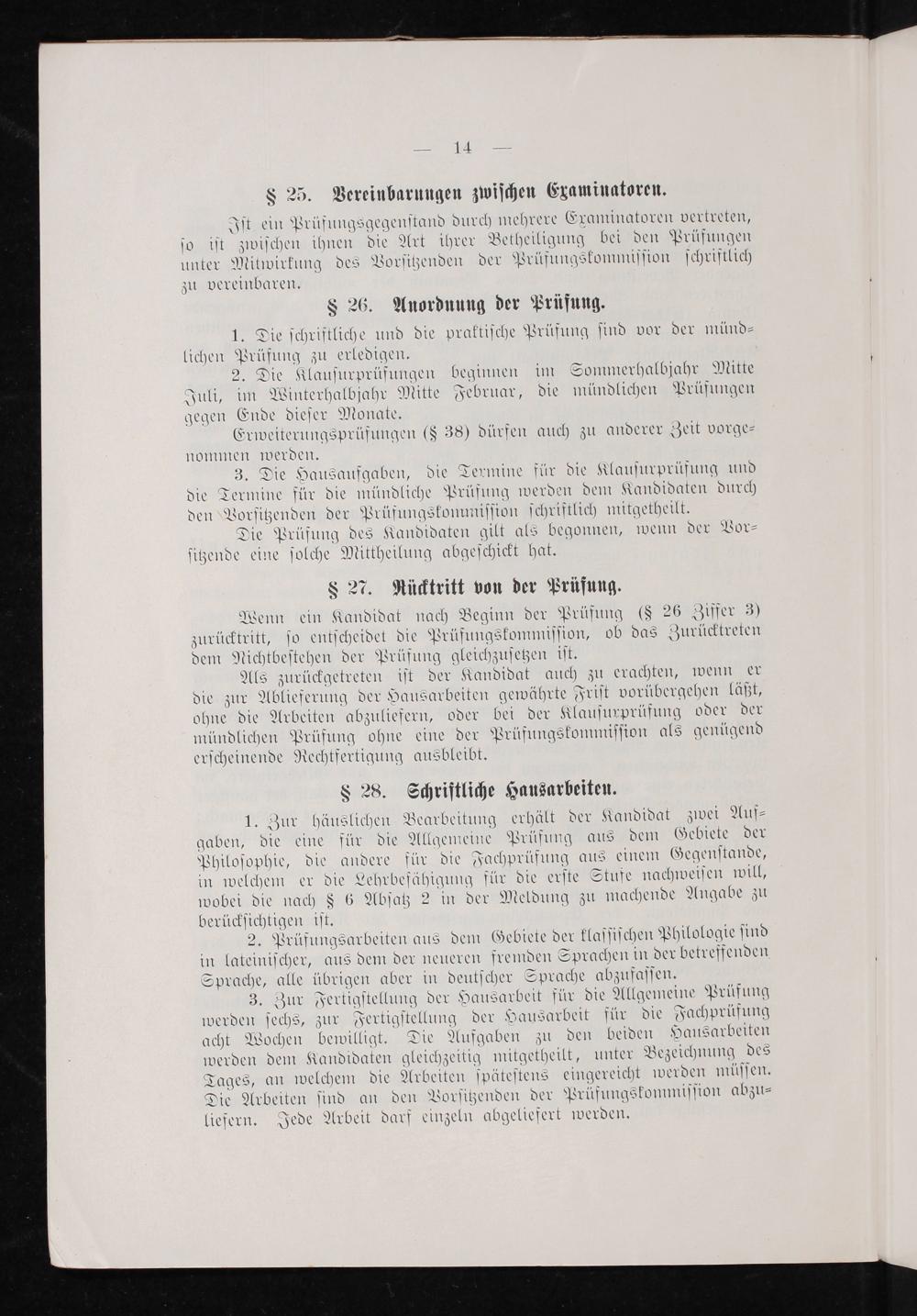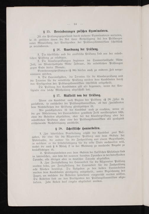 3. Die Hausaufgaben, die Termine für die Klauſurprüfung und die Termine für die mündliche Prüfung werden dem Kandidaten durch den Vorſitzenden der Prüfungskommiſſion ſchriftlich mitgetheilt.