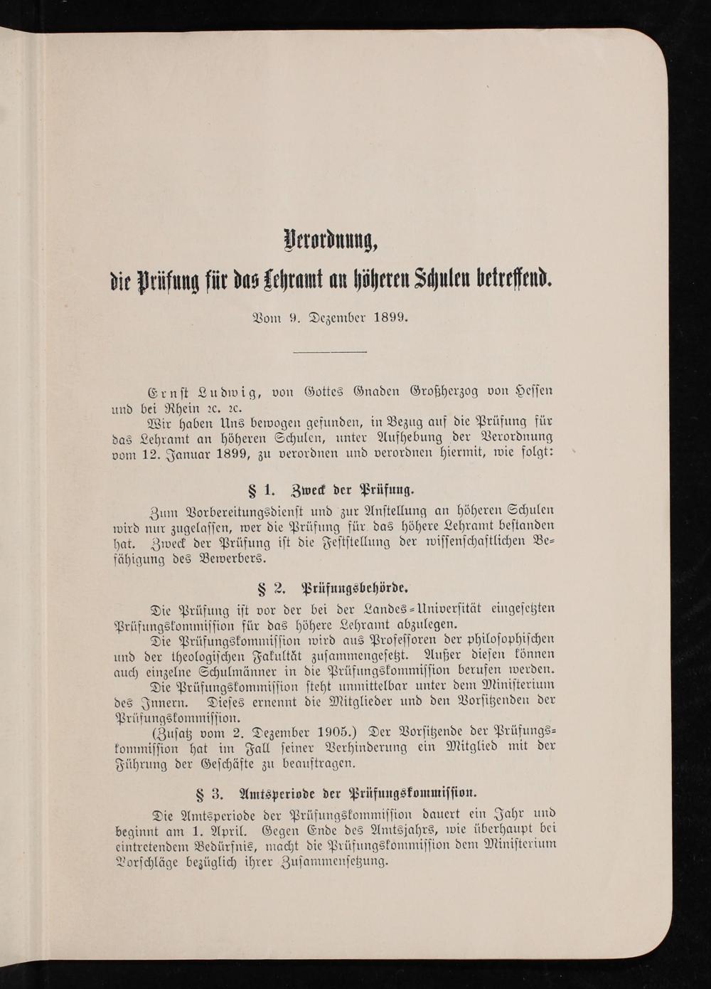 Wir haben Uns bewogen gefunden, in Bezug auf die Prüfung für das Lehramt an höheren Schulen, unter Aufhebung der Verordnung vom 12. Januar 1899, zu verordnen und verordnen hiermit, wie folgt: