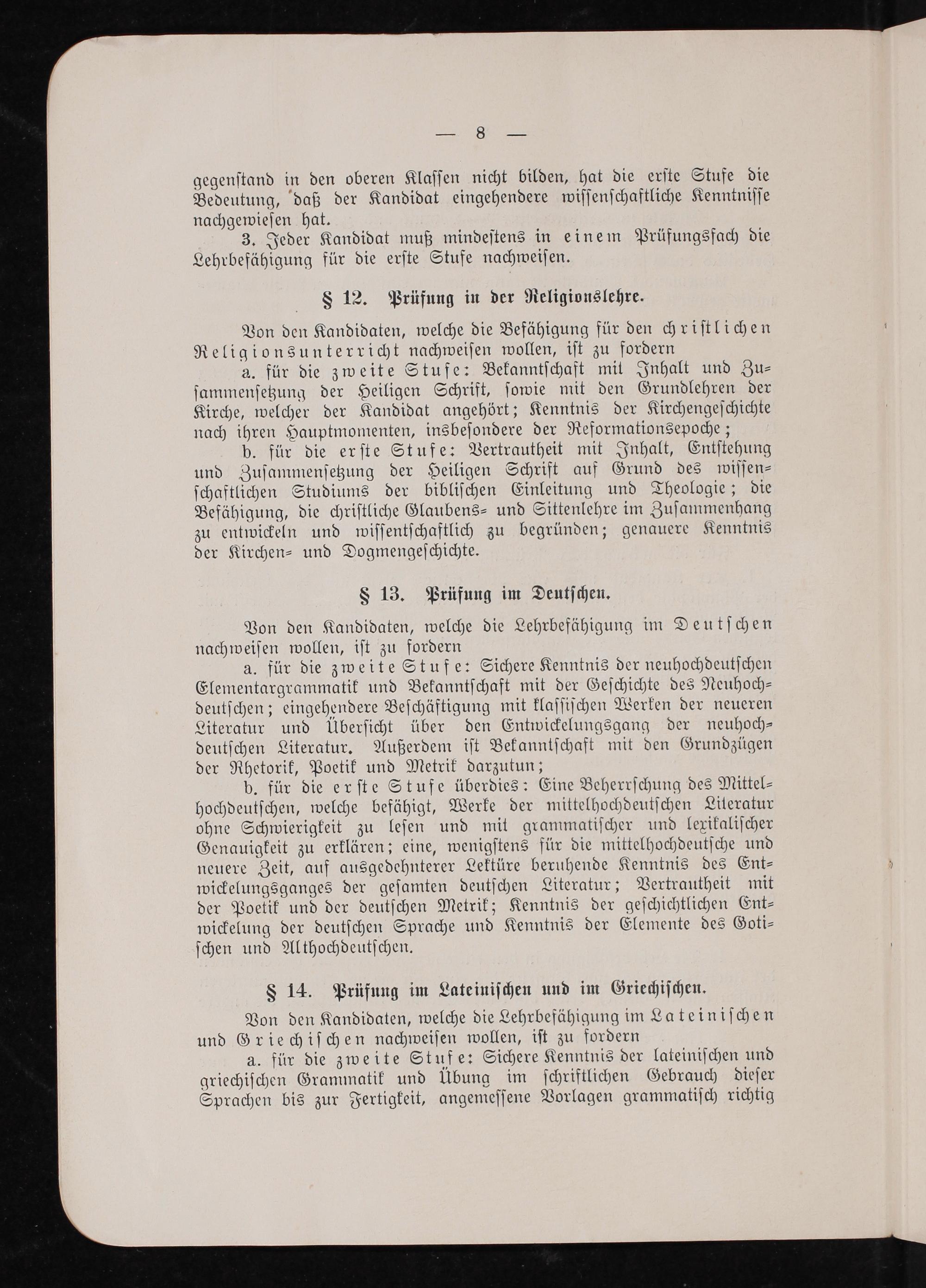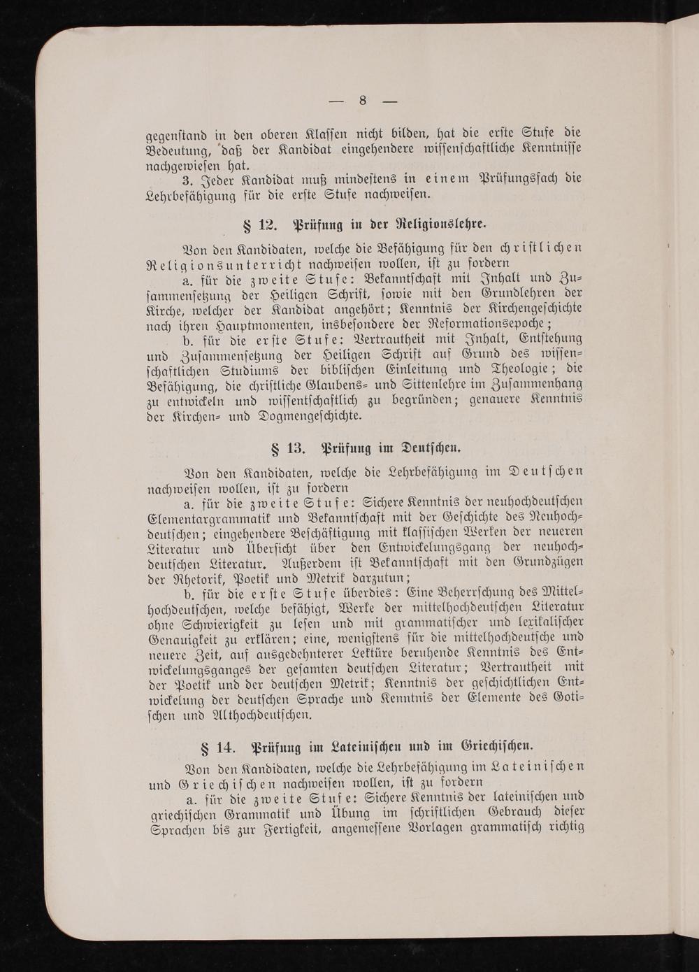 3. Jeder Kandidat muß mindeſtens in einem Prüfungsfach die Lehrbefähigung für die erſte Stufe nachweiſen.