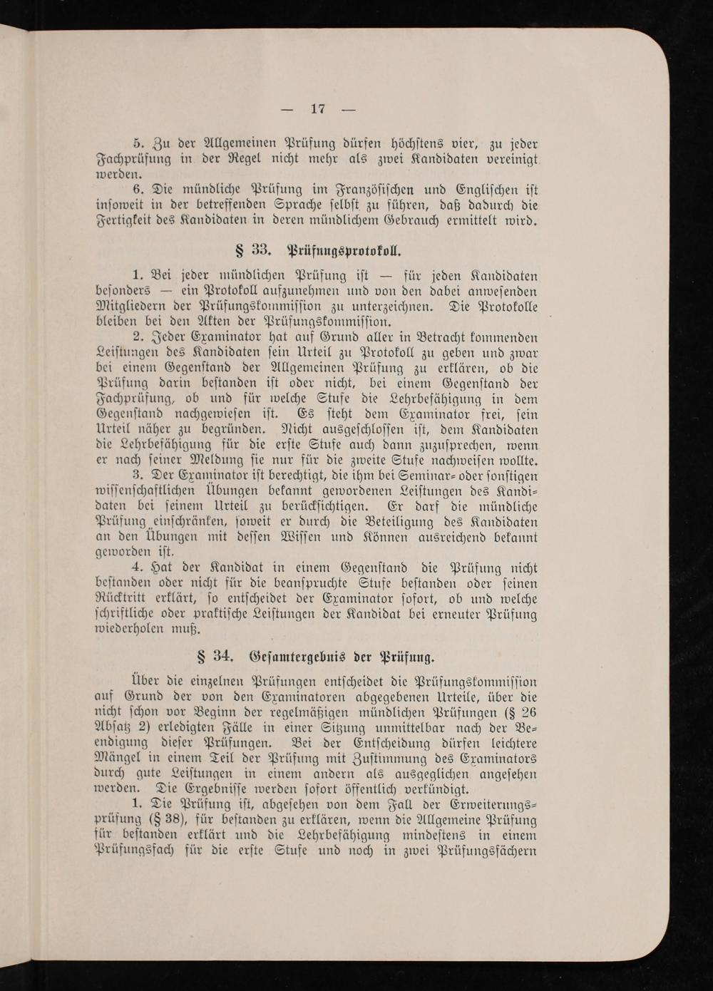 1. Bei jeder mündlichen Prüfung iſt— für jeden Kandidaten beſonders— ein Protokoll aufzunehmen und von den dabei anweſenden Mitgliedern der Prüfungskoinmiſſion zu unterzeichnen. Die Protokolle bleiben bei den Akten der Prüfungskommiſſion.