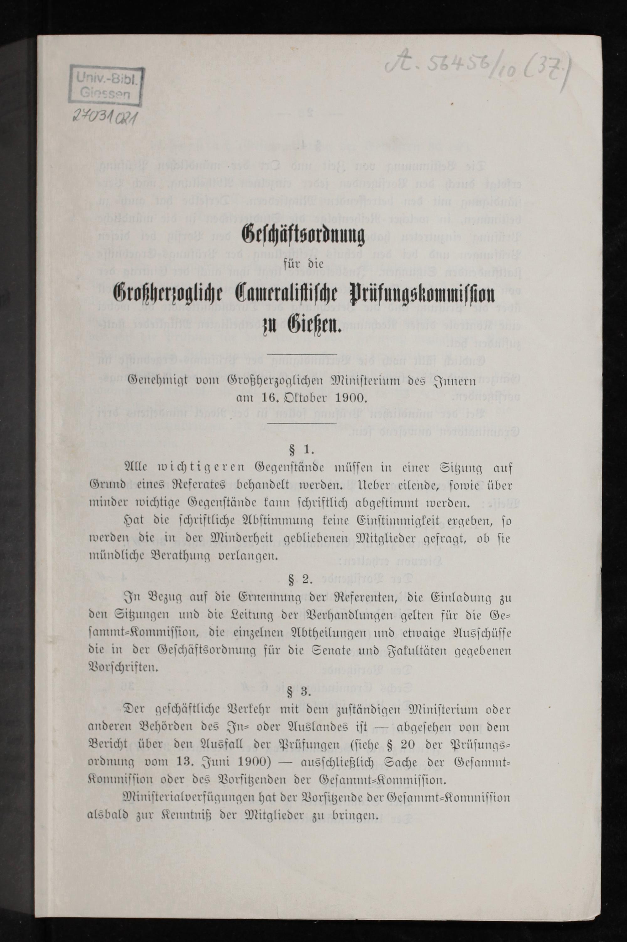 für die Großherzogliche Cameraliſtiſche Prüfungskommiſſion zu Gießen.
