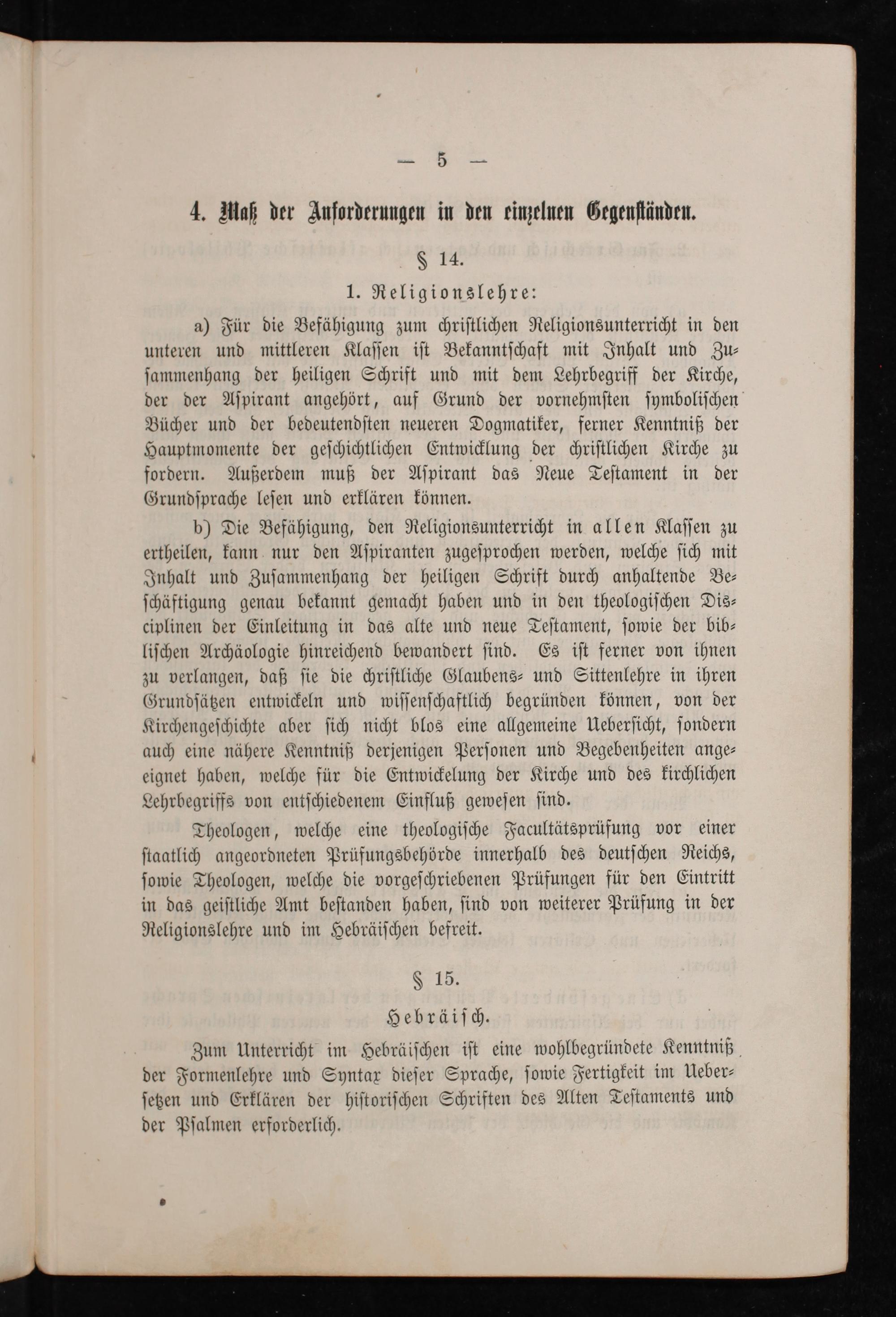 Theologen, welche eine theologiſche Facultätsprüfung vor einer ſtaatlich angeordneten Prüfungsbehörde innerhalb des deutſchen Reichs, ſowie Theologen, welche die vorgeſchriebenen Prüfungen für den Eintritt in das geiſtliche Amt beſtanden haben, ſind von weiterer Prüfung in der Religionslehre und im Hebräiſchen befreit.
