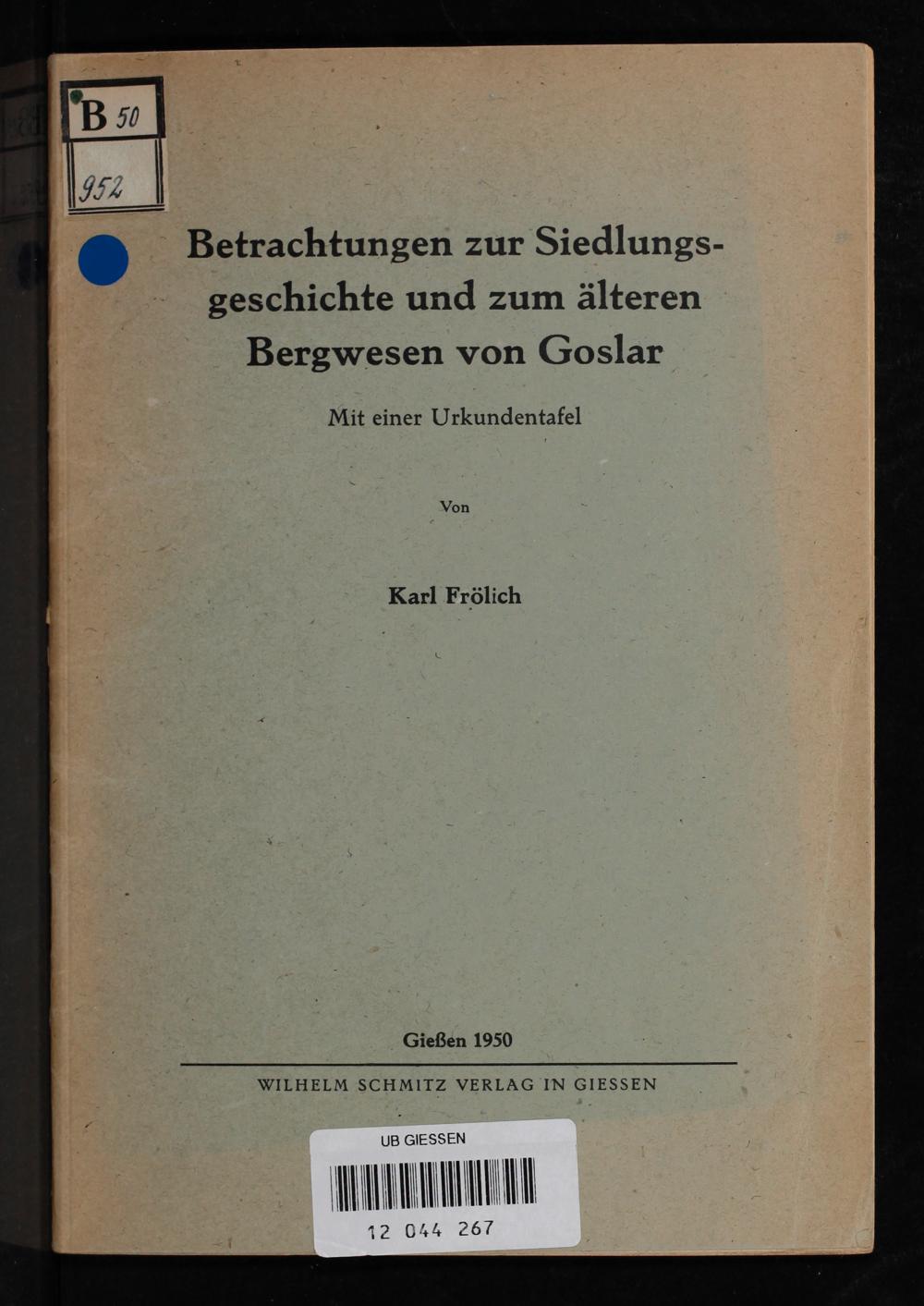 — 0 Betrachtungen zur Siedlungs- geschichte und zum älteren Bergwesen von Goslar