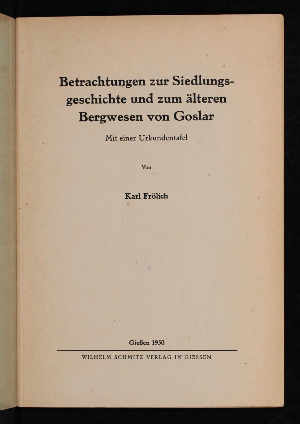 Betrachtungen zur Siedlungs- geschichte und zum älteren Bergwesen von Goslar