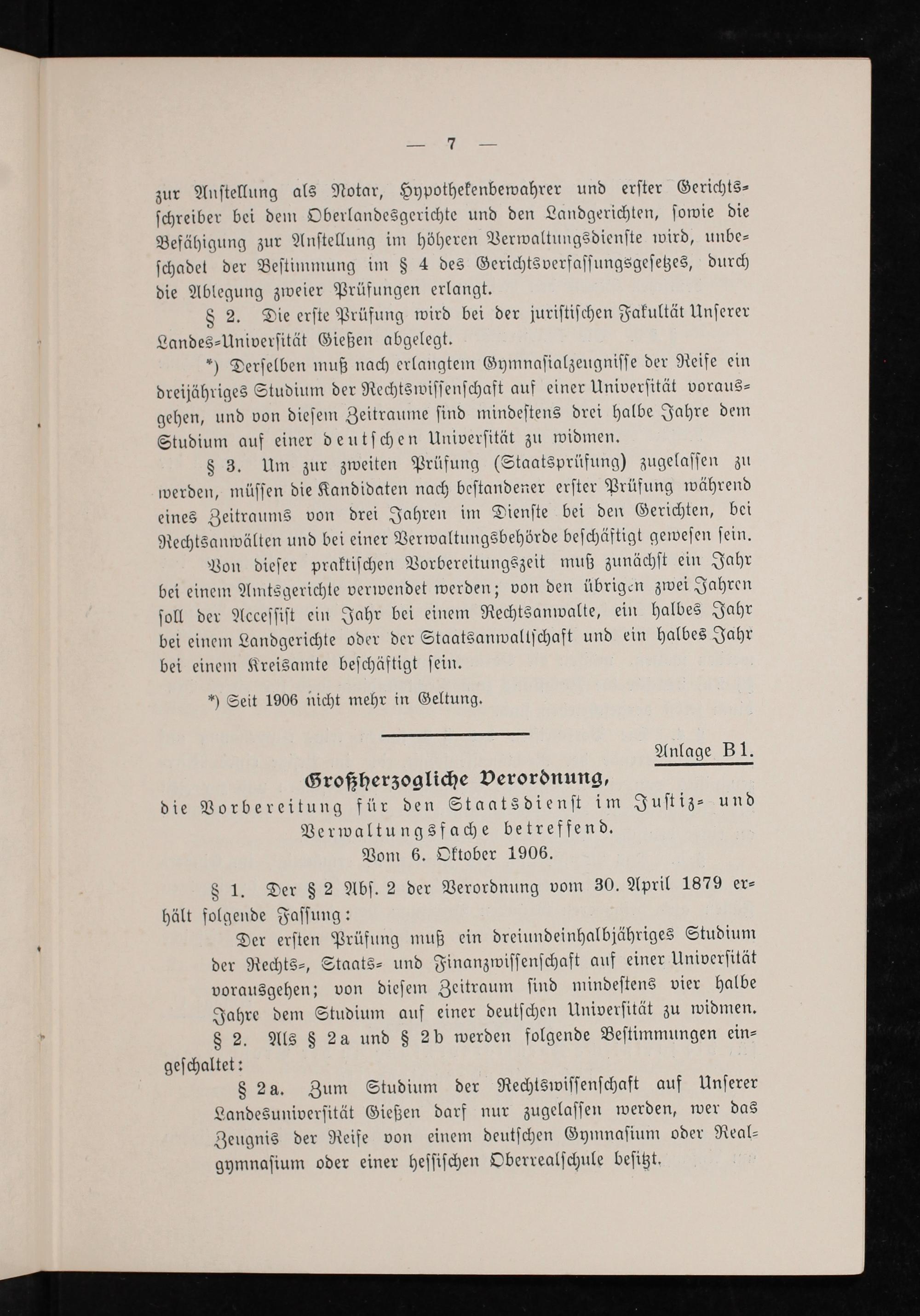 Großherzogliche Verordnung, die Vorbereitung für den Staatsdienſt im Juſtiz⸗ und Verwaltungsfache betreffend. Vom 6. Oktober 1906.