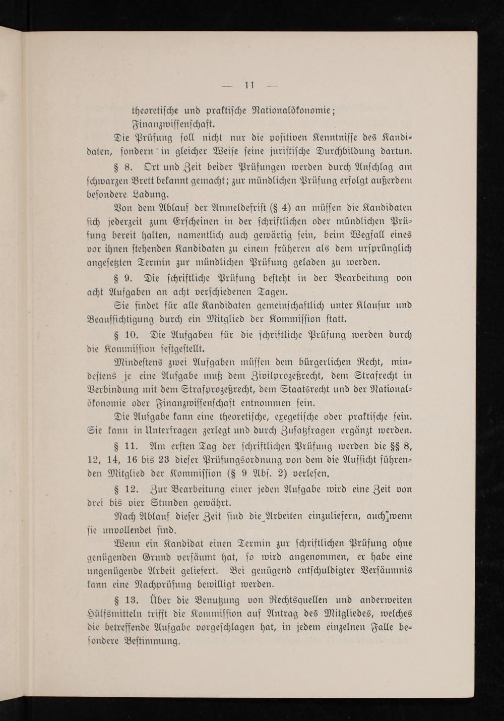 § 8. Ort und Zeit beider Prüfungen werden durch Anſchlag am ſchwarzen Brett bekannt gemacht; zur mündlichen Prüfung erfolgt außerdenmn beſondere Ladung.