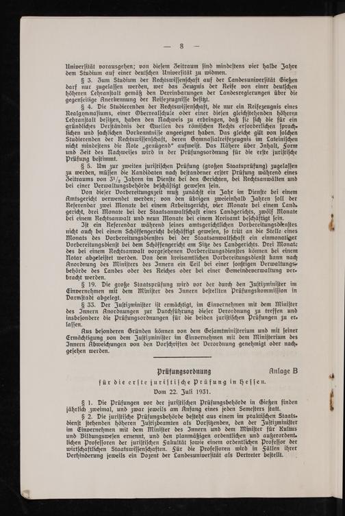 Prüfungsordnung Anlage B für die erſte juriſtiſche prüfung in heſſen. Vom 22. Juli 1931.