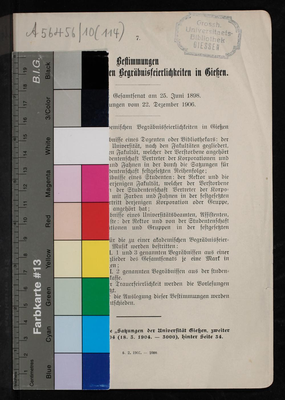 e„Satzungen der Univerſität Gießen, zweiter 54(18. 3. 1904.— 3000), hinter Seite 34.