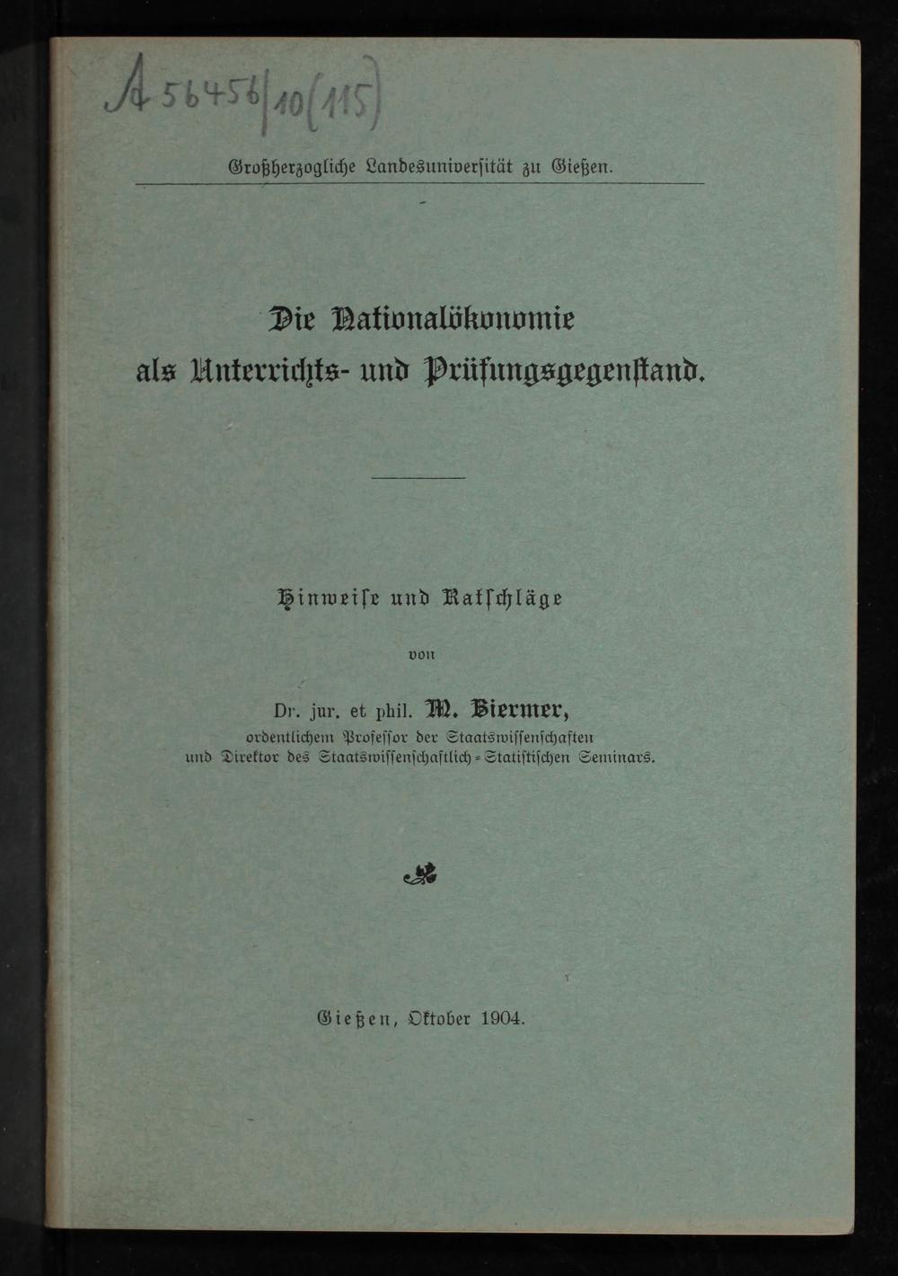 Dr. jur. et phil. M. Biermer, ordentlichem Profeſſor der Staatswiſſenſchaften und Direktor des Staatswiſſenſchaftlich⸗Statiſtiſchen Seminars.