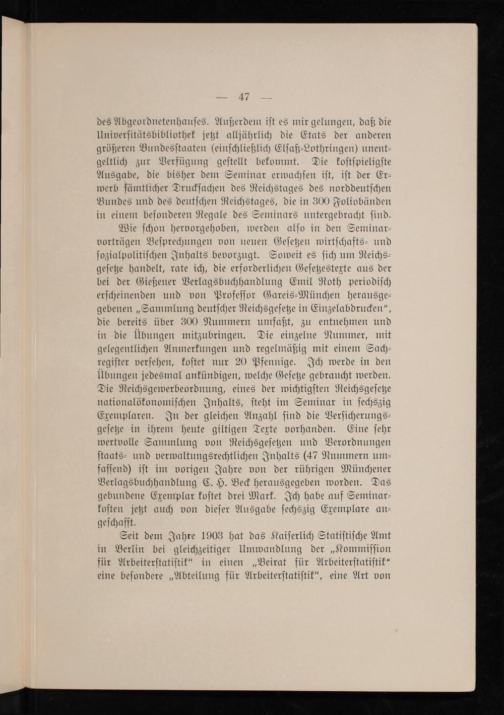 Seit dem Jahre 1903 hat das Kaiſerlich Statiſtiſche Amt in Berlin bei gleichzeitiger Umwandlung der„Kommiſſion für Arbeiterſtatiſtik“ in einen„Beirat für Arbeiterſtatiſtik“ eine beſondere„Abteilung für Arbeiterſtatiſtik“, eine Art von