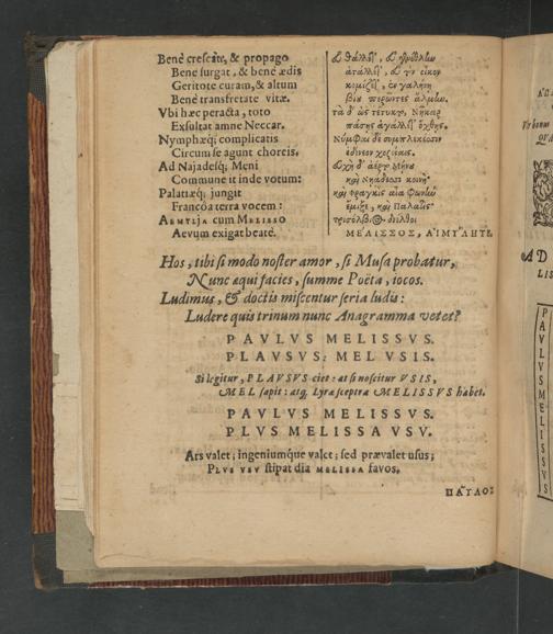 Hos, tibi ſi modo noſter amor, ſi Mauſa brobatur, Munc qui facies, ſumme Poëta, iocos. Ludimus,&õ doctis miſcentur ſeria ludu: Ludere quis trinum nunc Anagramma veter?