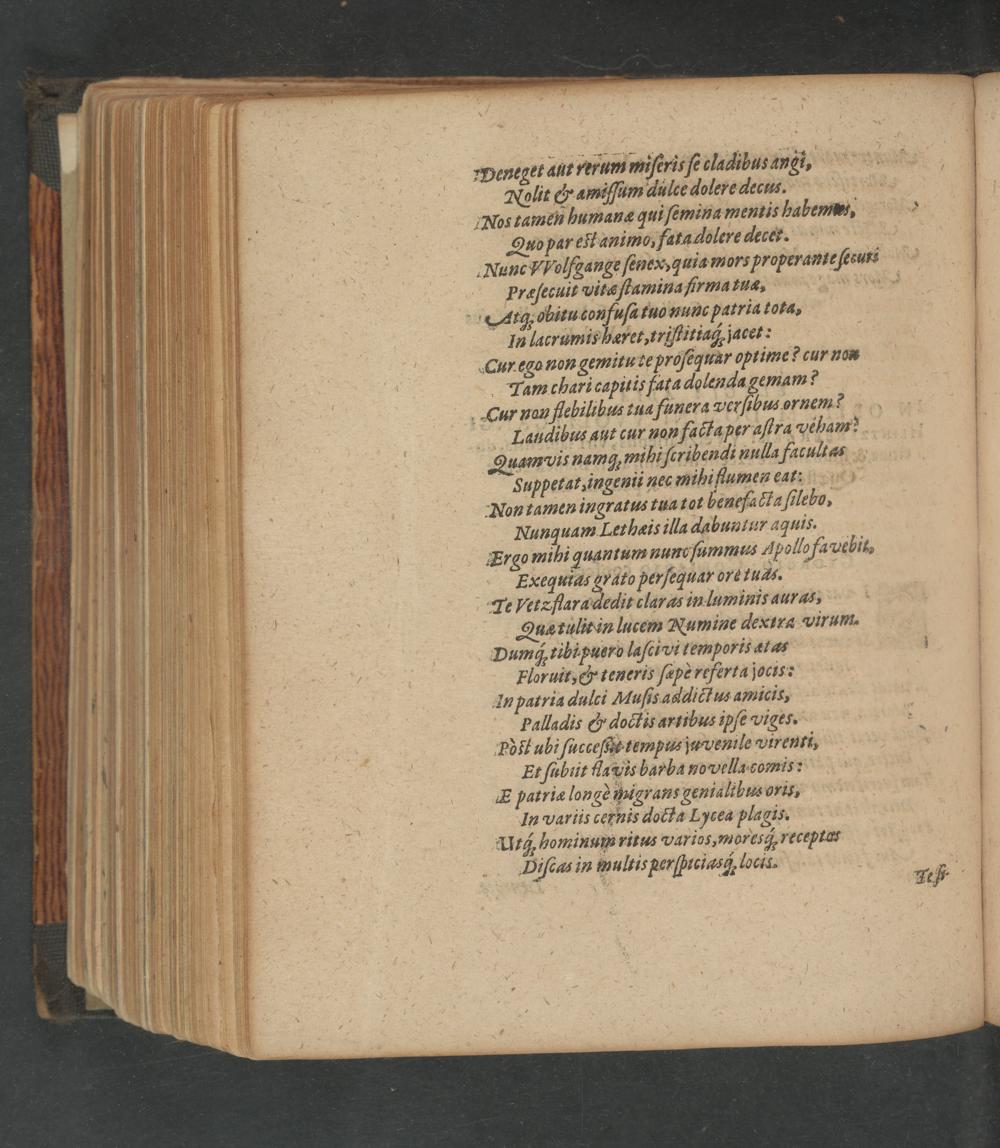 Fuppetat, ingenii nec mihi fiumen eat: Non tamen ingratus tua tot beuefacta ſilebo, Nunquam Lethæis illa dabuntur aquis. Ergo mihi quantum nunsſummus Apollo fa Lebit⸗ Exequias gyato perſequar ore tuds. Te Vvetzflaradedit claras inluminis auras, Qua rulit in lutem Numine dexira Virum. Dumq tibi puero laſci vit emporis ætas Floruit,& teneris ſapè reférta jocis: In patria dulci Muſis addictus amicis, palladis& doctis artibus ipſe viges.. Poit ubi ſucceſi tempus juvenile Vvirenri, 3 Et ſubiit flavis barba novella gomis: E patriæ longè hugrans geniali bus oris, In variis cernis docta Lycea plagis. UItc hominum ritus varios, moresg; receptor Diſcas in multis eerſpaciasg, locis.