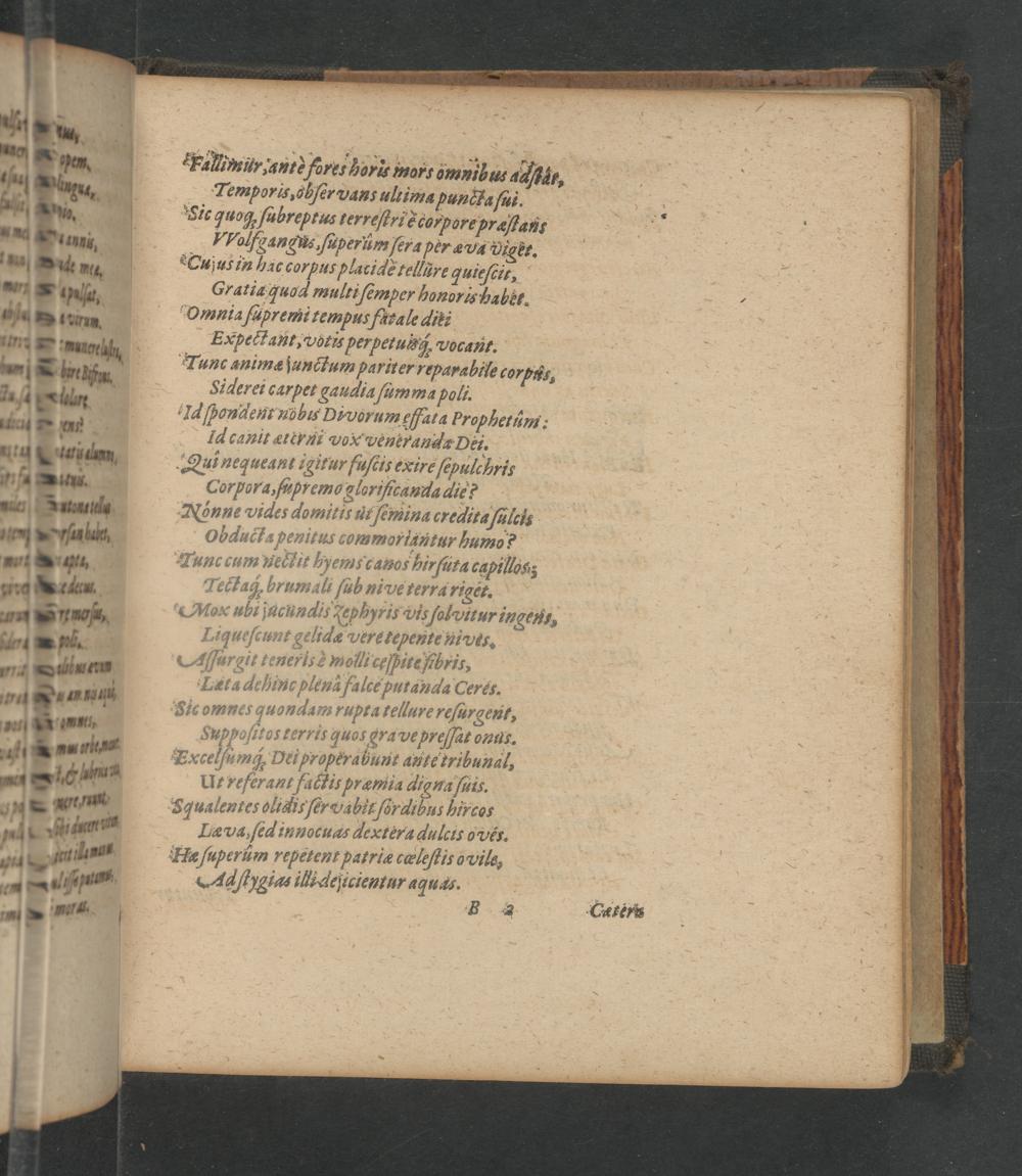 TFalimur. ante farer hord marr omnihas ahte„, Terports, obſer vans ultima punsta/ui. Sie quog ſubreptus terreſtrie corpore preſtaus alfgangus, ſuperüm ſera per æva viger. Cu jur in hac corpus placidè tellüre quieſcit, Gratia quod multi ſemper honoris baber. Omnia fupremi tempus farale diti Expéctant, votis perpetuui vocaut. Tunc animæ junc᷑tum pariter reparabtle corpis, Siderei carpet gaudia ſumma polt. Ia ſpondent ubbis Divoram Mata Prophetüm: Id canit æterni vox vensranda Dei. Qui nequeant igitur fuſcis exire ſepulchris Corpora, füpremo glorificanda aie? onne vides domitis ut ſemina credita ſulcis Obducta penitus coumoriautur humo? Tunc cum Hetlit hyems cauor hirfuta cgpillosz Tectaq, rumali ſub nive terra riget. Mox uli jucundis Tephyris vis ſolvitur ingens, Liq ueſcunt gelidæ Vere fepente Hi ves. Allurgit teneris& molli ceijpite ꝑhris, Lata dehinc plenà fa lce putanda Ceres. Sic omnes quondanm rupta tellure reſurgent,