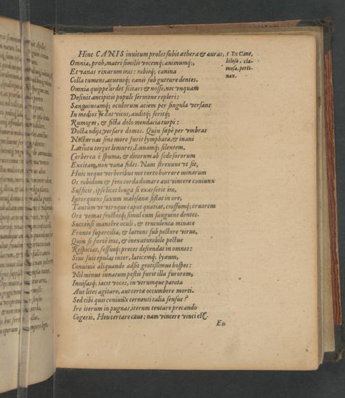 Hinc ¶ A NI inuitum proles ſubit ærhera& auras, Ex Cane, Omnia, probmatri ſimilis yocemq́; animumqj Liloſa, cla- Et yanas rixarum iras: rabieq; canina moſa,p La. Colla tumens, acuensq́; canis ſub gutture dentes. Hee. Omnia quippe ardet ſcitari& noſſe, nec ynquam