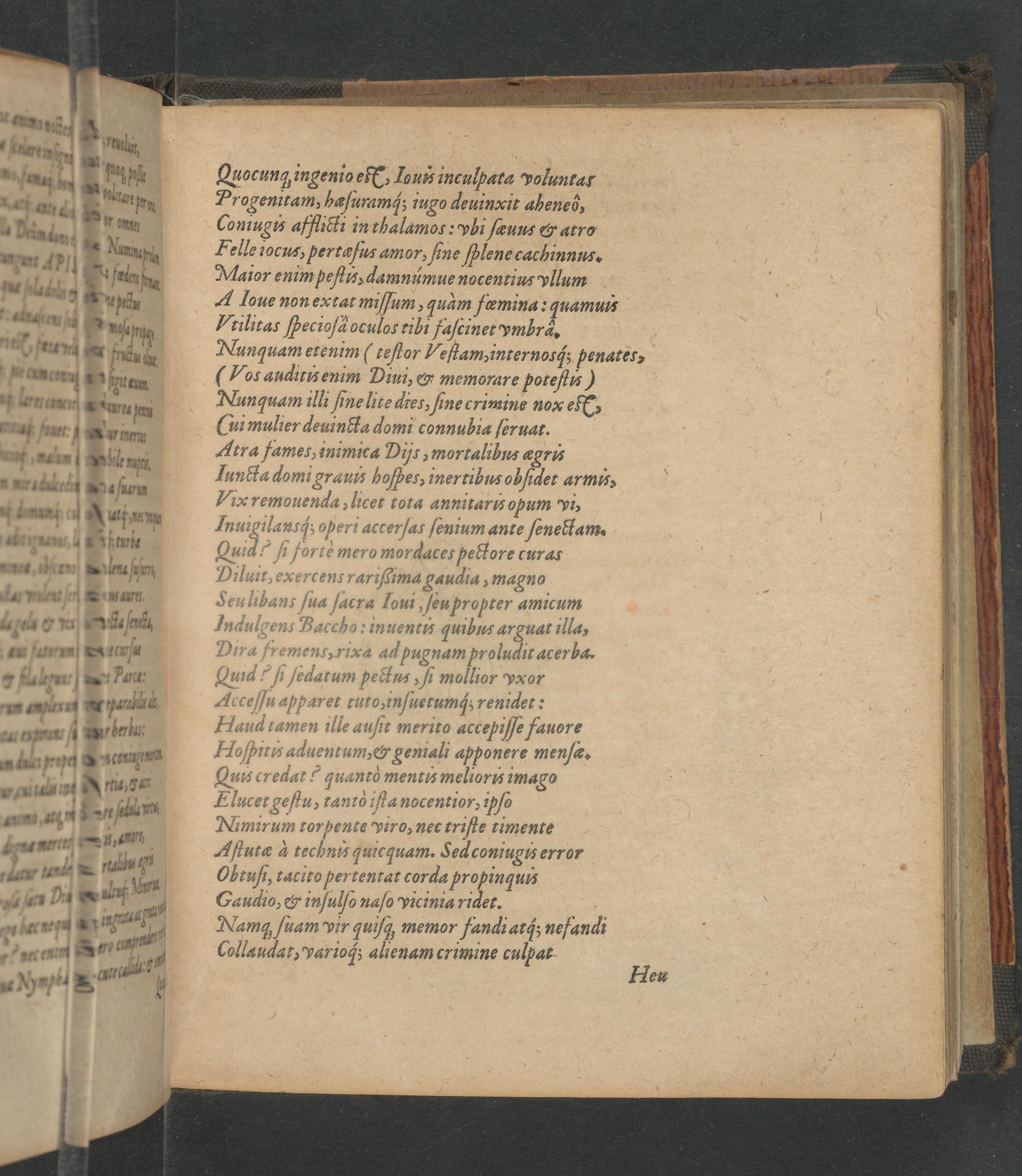 Quocung ingenio efc, Iouv incuſpara yoluntat Progenitam, haſuramq; iugo deuinxit abeneò, Coniugus afflicti in thalamos: yhi ſæuus& arro Felle iocus, pertaſuz amor, ſine ſplene cachinnus. Maior enim peſtu, damnuúmue nocentius yllum A Ioue non extat miſſum, qudm fæmina: quamui Vtilitas ſpecioſd oculos tibi faſcinet ymbrà.